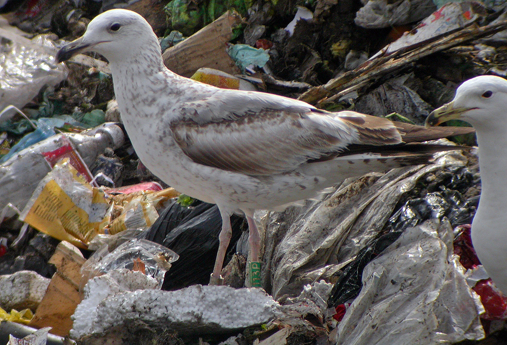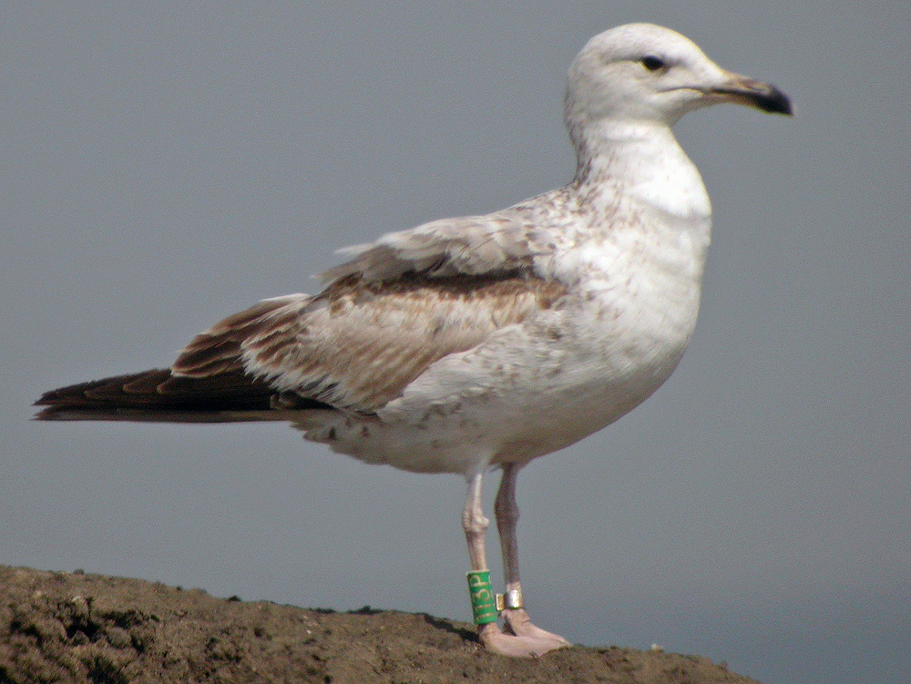 Larus cachinnans 2CY 113P May 17 2007, Łubna landfill, Poland. Picture: Ruud Altenburg. Green 113P. Bird ringed as pullus in 2006 at Jankowice Babice Malopolskie, S. Poland (50,03 19,47). Bird in active complete moult, missing many MC, TT1, and several inner LLC.