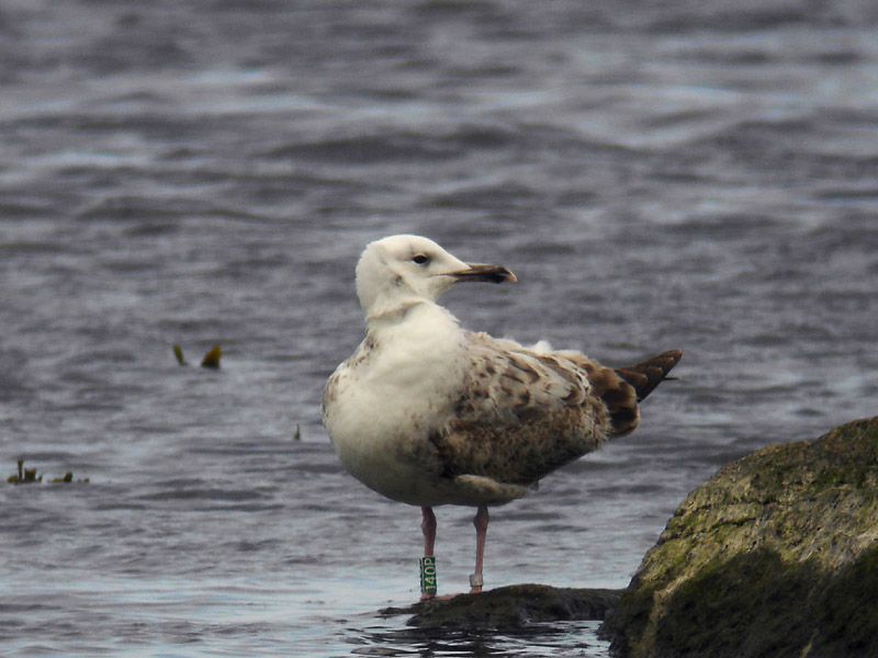 Larus cachinnans 2CY 140P May 09 2007, Simrishamn, Sweden. Picture: Jörgen Bernsmo. Bird ringed as pullus on June 06 2006 at Jankowice Babice Malopolskie, Poland. From this picture it seems no coverts nor tertials were included in the post-juvenile moult. Head shape typical for cachinnans. |