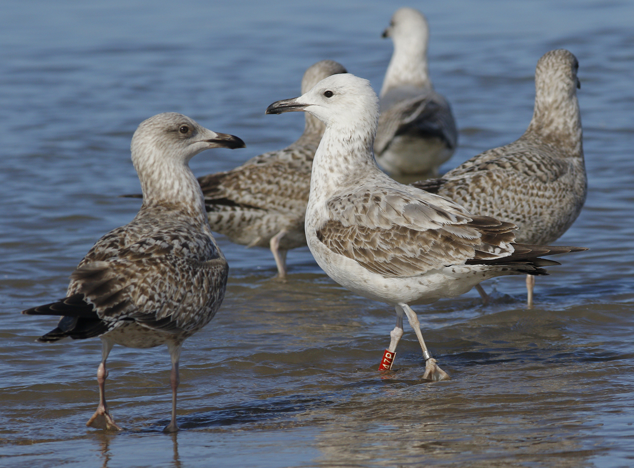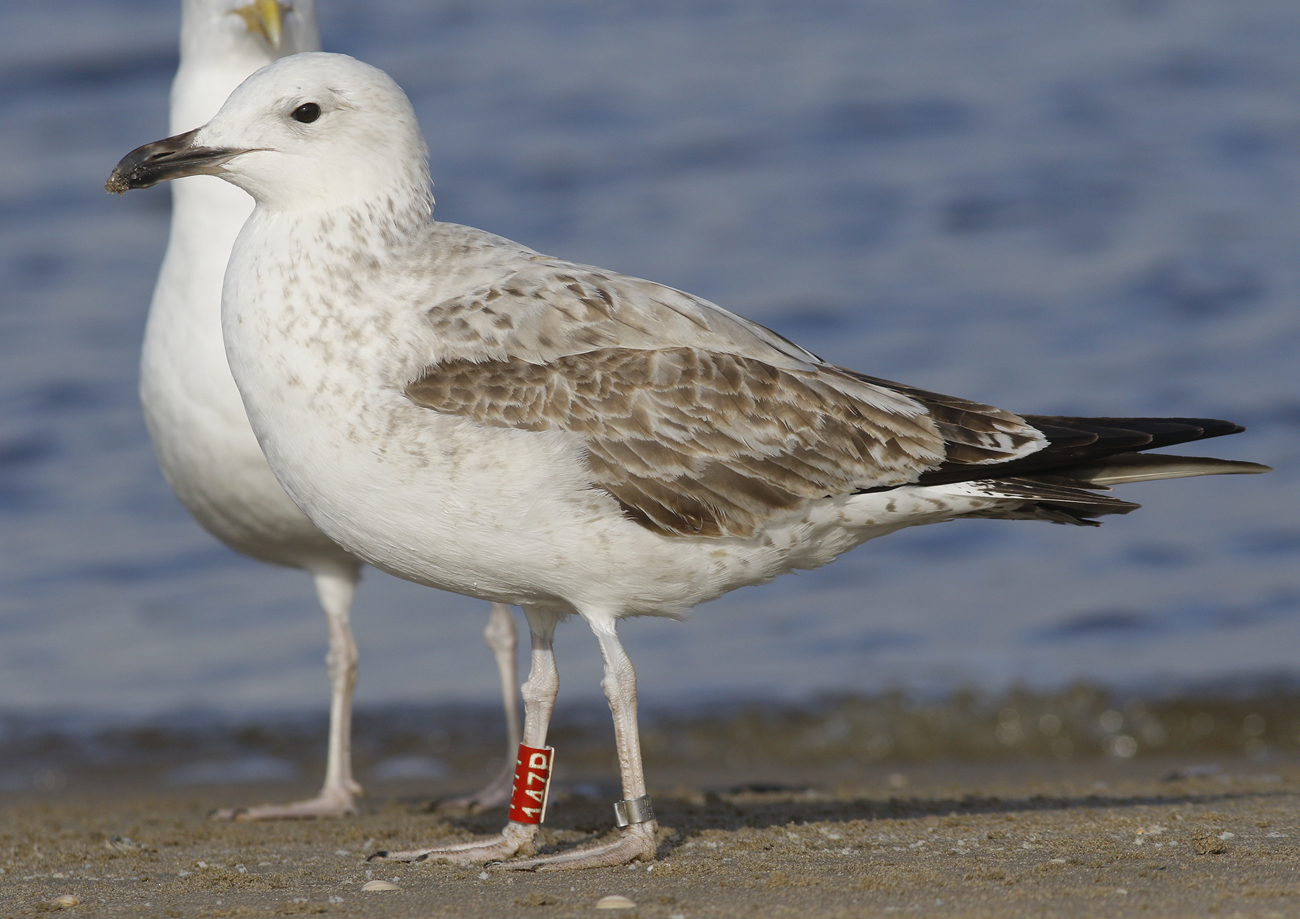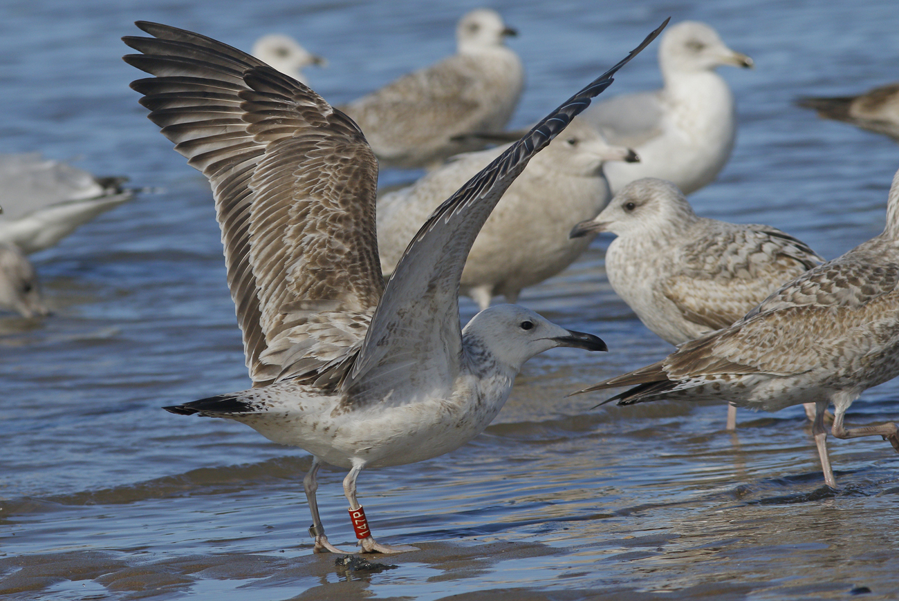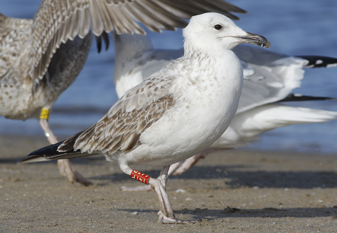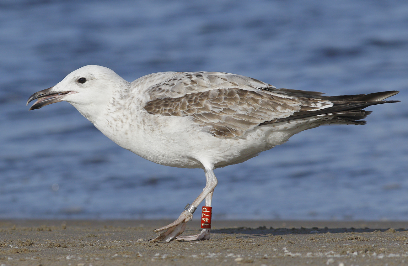Larus cachinnans 2CY 147P March 06 2017, Katwijk beach, the Netherlands.