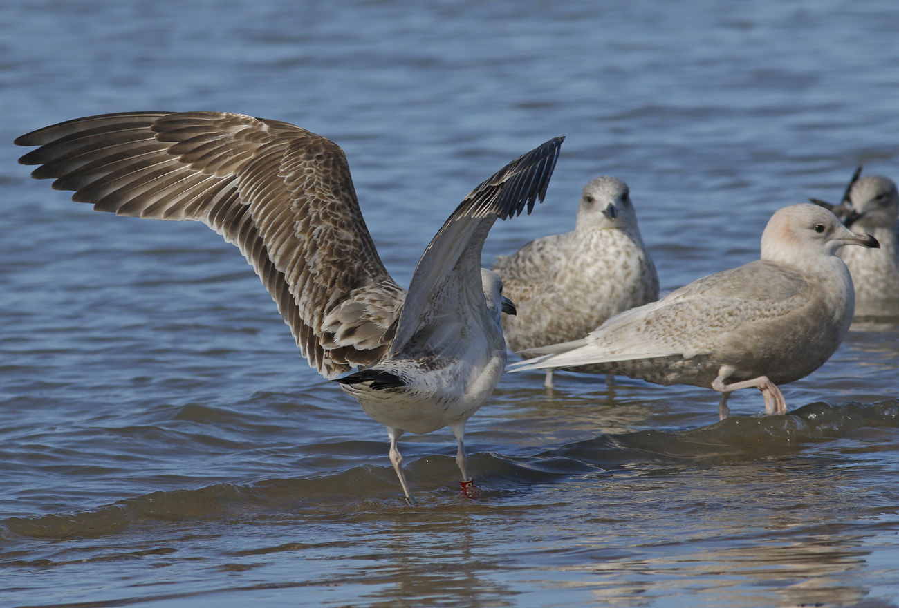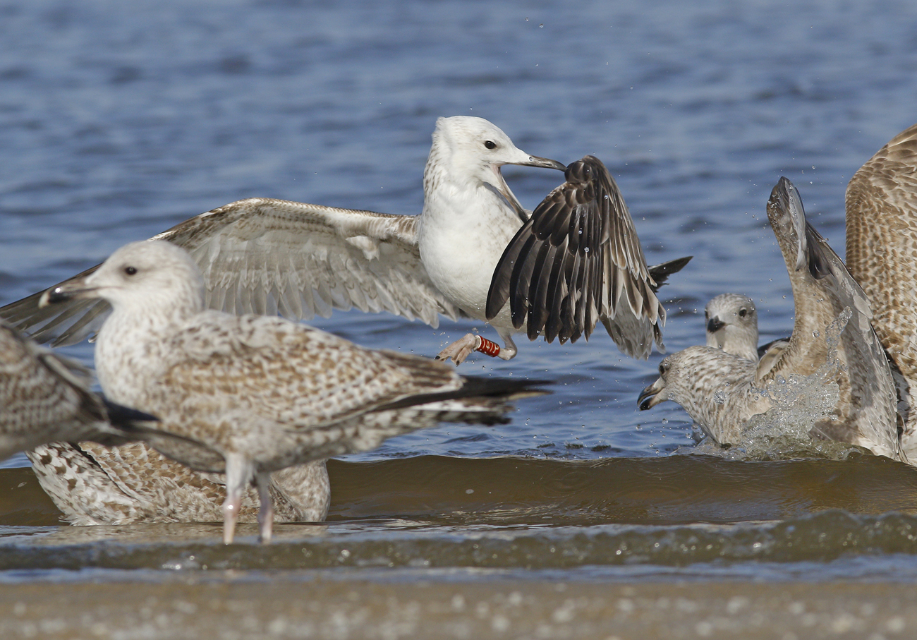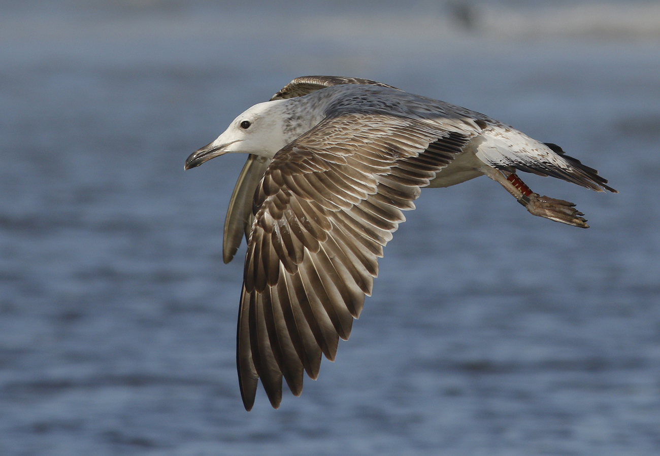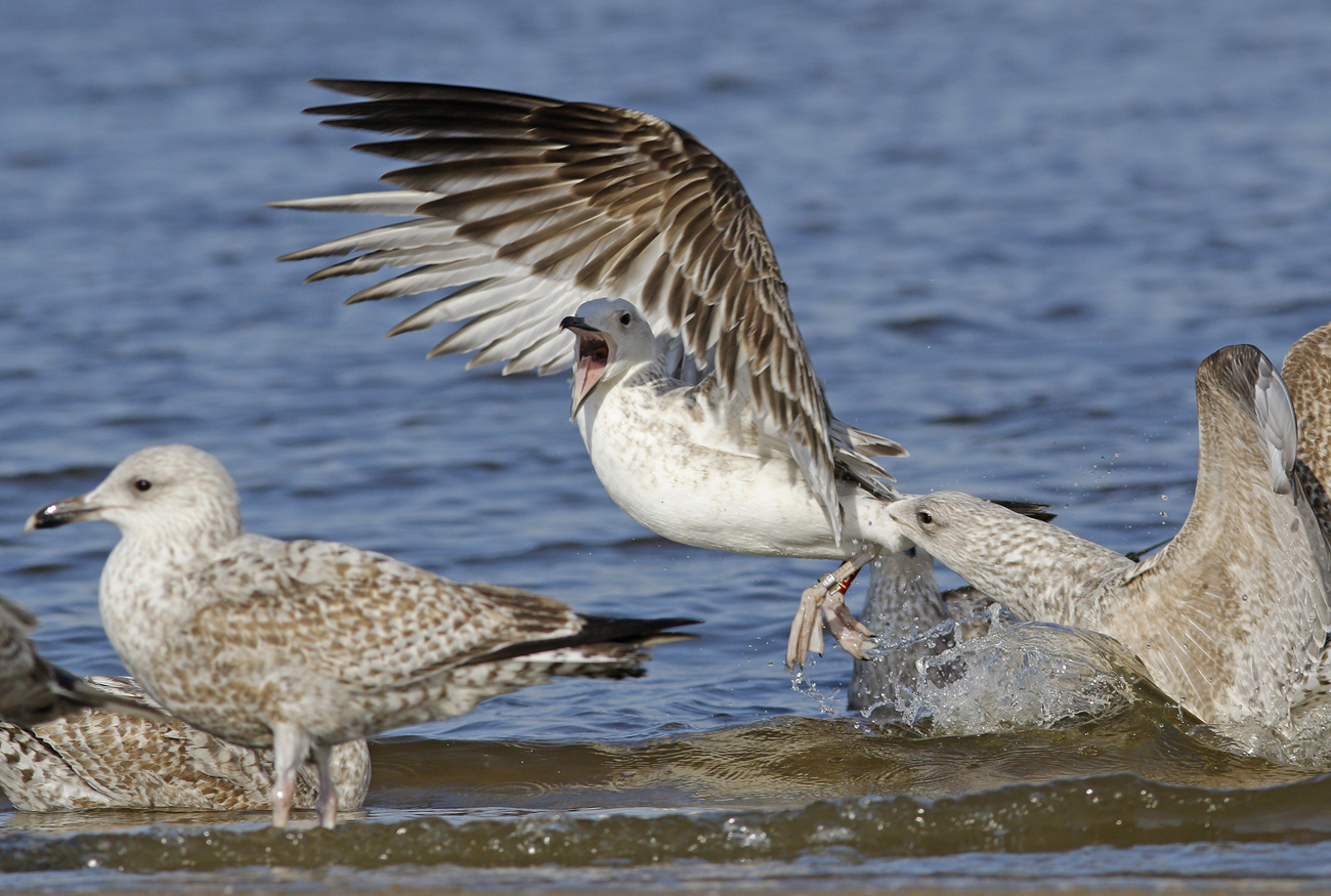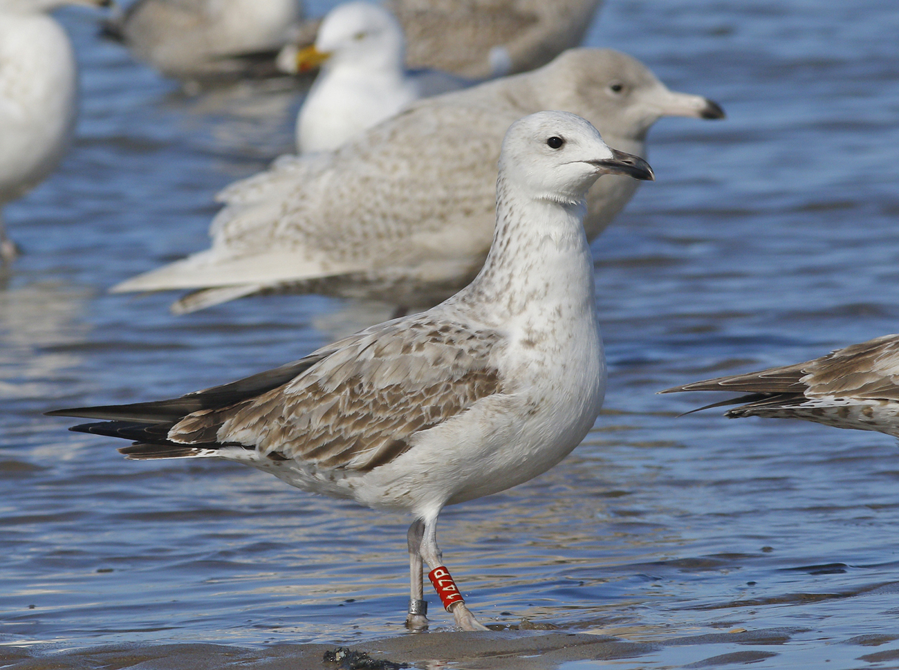 Larus cachinnans 2CY 147P March 06 2017, Katwijk beach, the Netherlands.