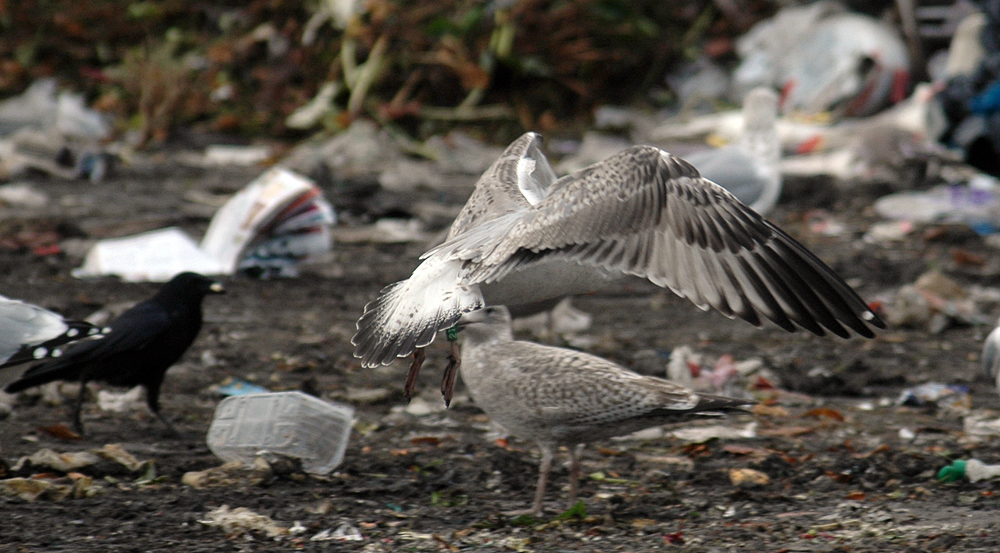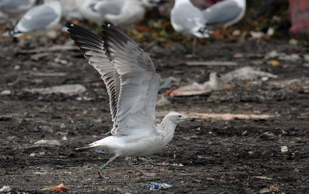 Larus cachinnans 2CY 211P October 22 2008, Deponie Pohlsche Heide - Minden, Germany (52°23'05N, 08°46'45E). Picture: Armin Deutsch. Green ring from Poland. Ringed as pullus green 211P & metal PLG DN-13992 on May 18 2007 in Zwirownia Zakole, Poland (50°02'N, 19°28'E). Zakole = gravel pit, Zwirownia is along the river Oder. Classic 2W cachinnans.