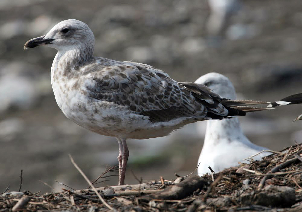 Larus cachinnans 2cy, August, Finland. Picture: Chris Gibbins. Maybe cachinnans, maybe hybrid. Jizz, underwing and call all fit cachinnans, but heavily marked. White underwing. |