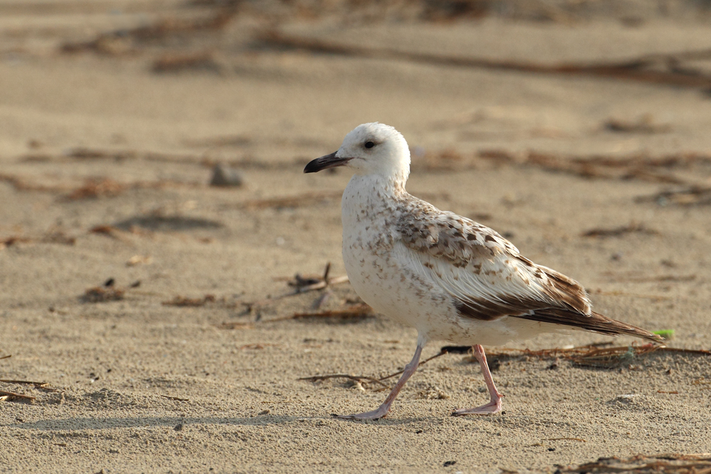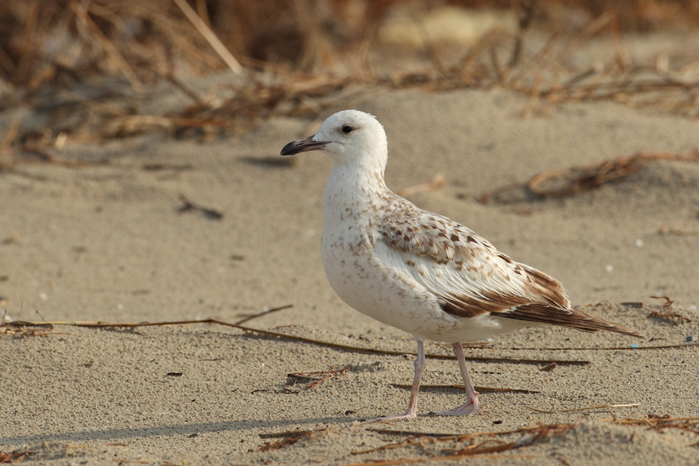 Larus cachinnans 2cy, 04 January 2011, Maagan Michael, Israel. Picture: Amir Ben Dov. Scapulars replaced. Post-juvenile moult in tertials and wing-coverts, leaving chevron pattern in 2nd gen feathers. Old juvenile feathers very worn (only shaft left). |