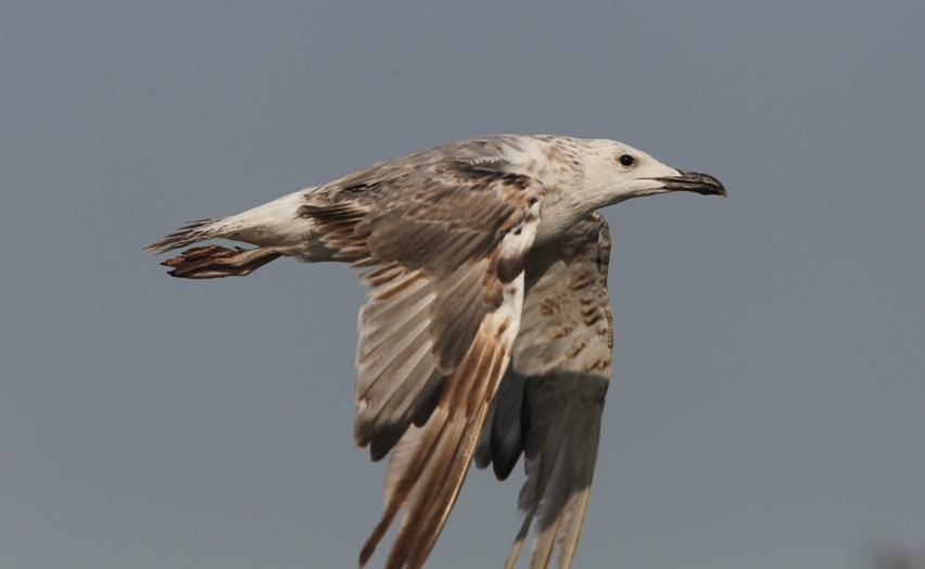 Larus cachinnans 2CY, June 28 2012, Baku landfill, Azerbaijan. Picture: Chris Gibbins. Bird in complete moult: P5/P8. Tail and secondaries old juvenile. |