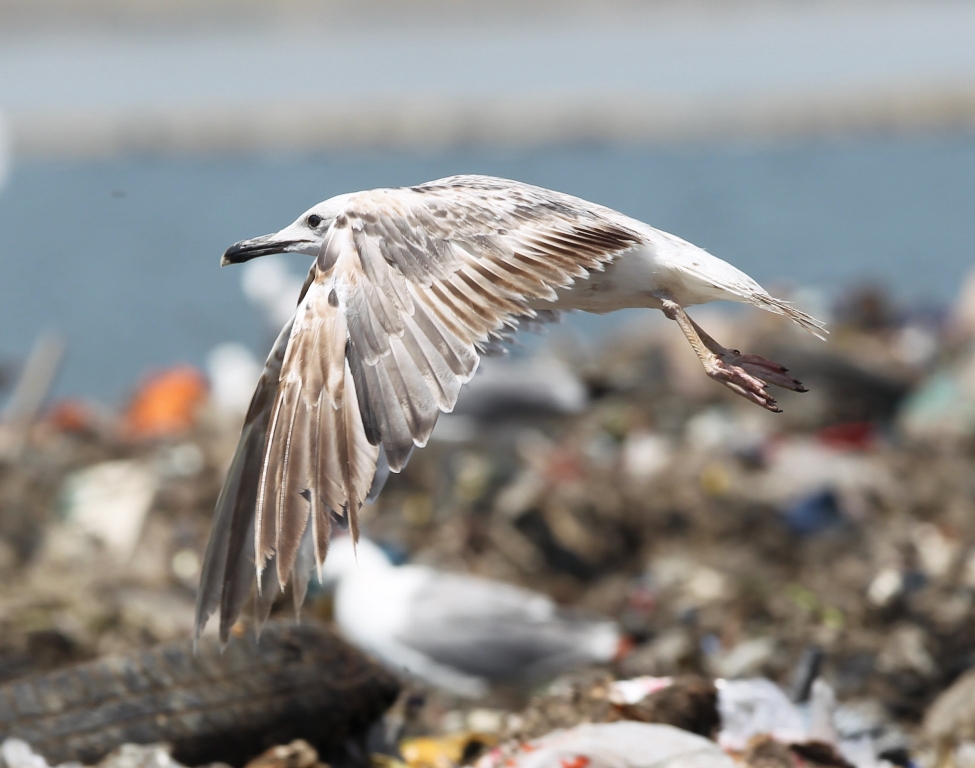 Larus cachinnans 2CY, June 22 2012, Baku landfill, Azerbaijan. Picture: Chris Gibbins. Bird in complete moult: P4/P7. No active moult in tail nor in secondaries. |