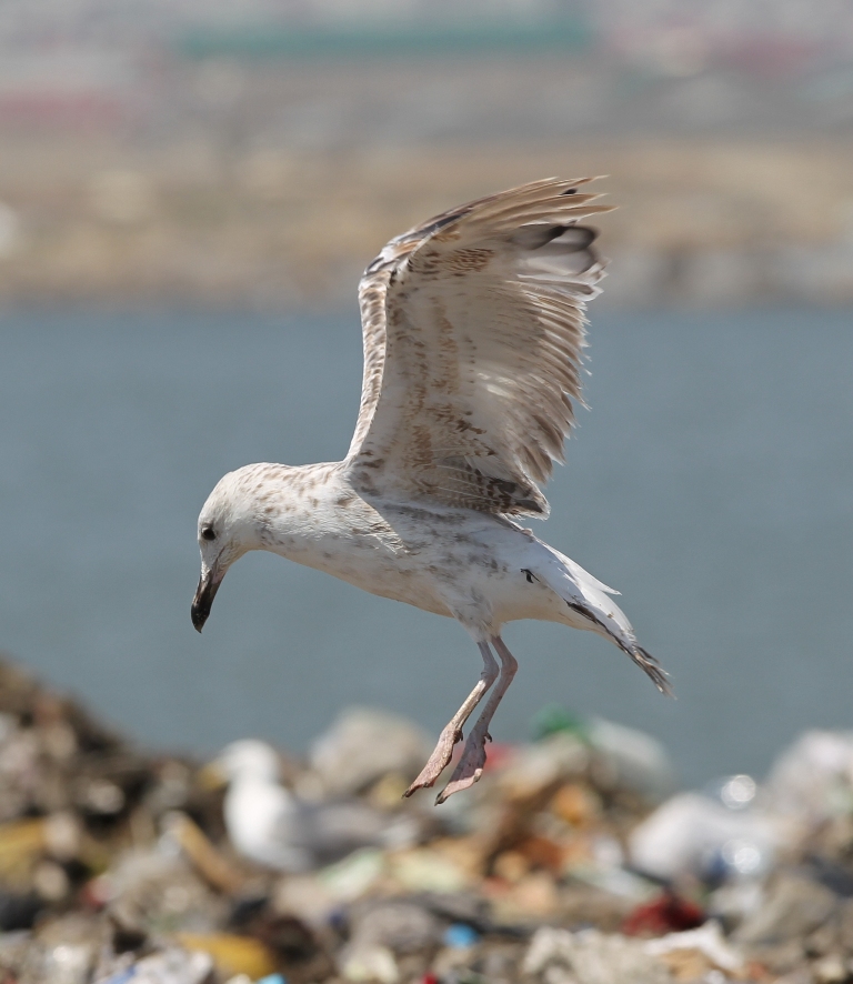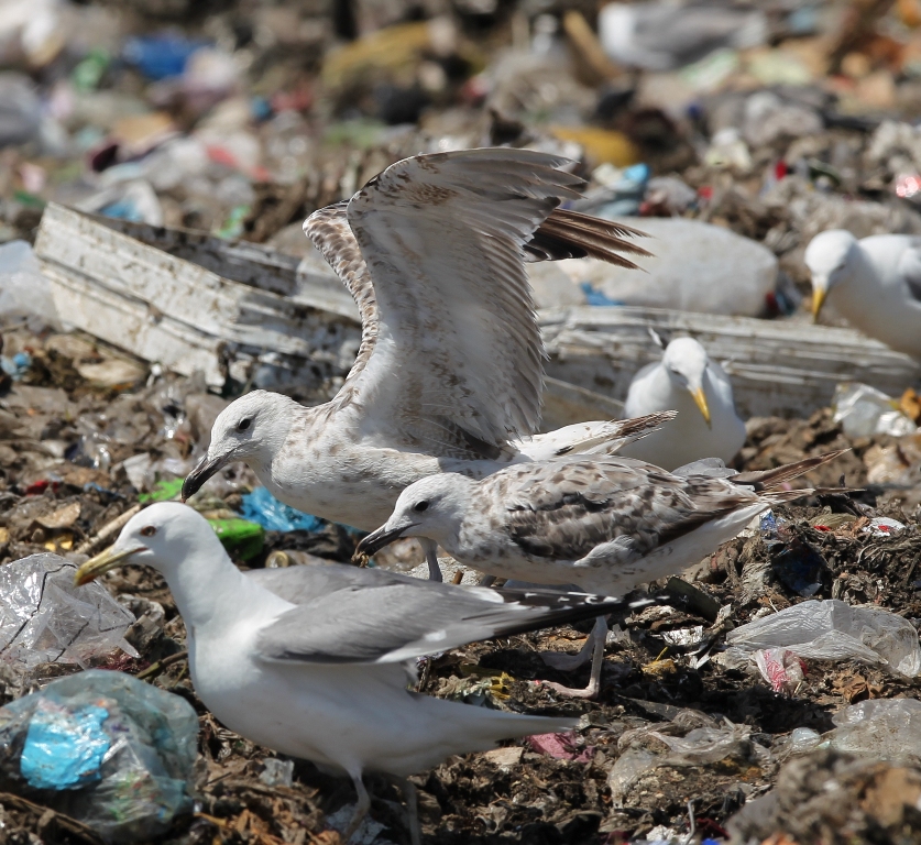 Larus cachinnans 2CY, June 22 2012, Baku landfill, Azerbaijan. Picture: Chris Gibbins. Bird in complete moult: P5/P8. No active moult in tail nor in secondaries. |