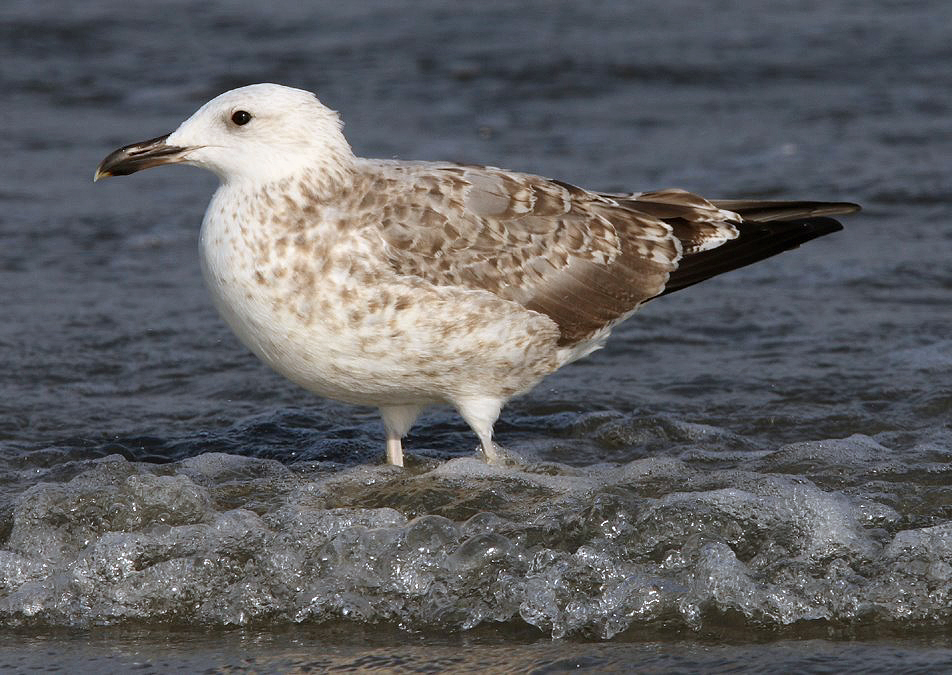 Larus cachinnans 2cy, 12-20 September 2008, Mamaia, north of Constanta on the Black Sea coast of Romania. Picture: Chris Gibbins. Last phase of complete moult. Old outer primaries dropped, new 2nd gen primaries growing in. Note missing MC, start of the partial autumn moult. |