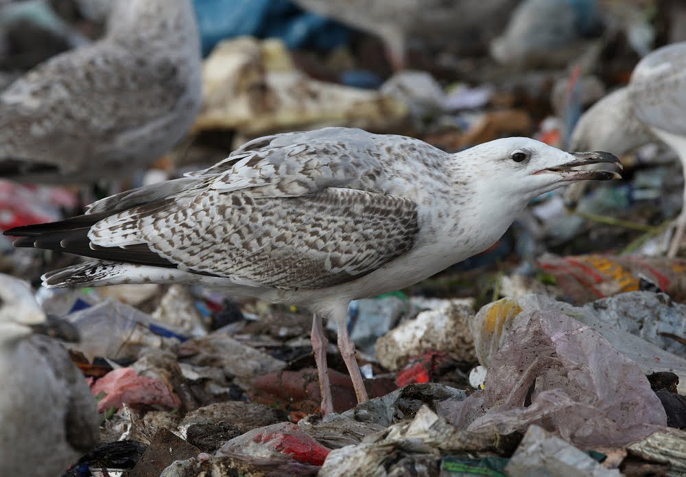Larus cachinnans 2cy, September, Lithuania. Picture: Chris Gibbins. Maybe cachinnans, maybe hybrid. This bird sounded like a cachinnans! Pattern on coverts very like michahellis.