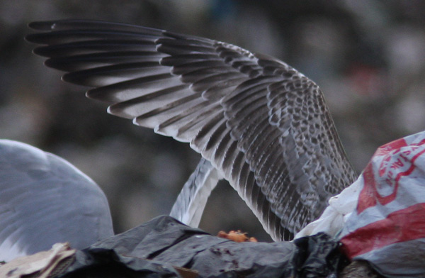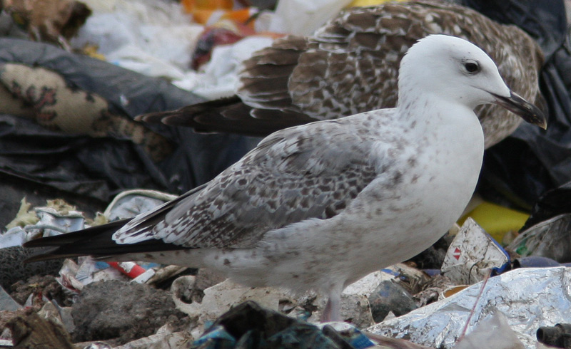 Larus cachinnans 2CY, September 17 2011, Ämmässuo dump, Espoo, S Finland. Picture: Visa Rauste. Classic bird with parallel bill, white head, elongated neck, hint of mirror on P10. |