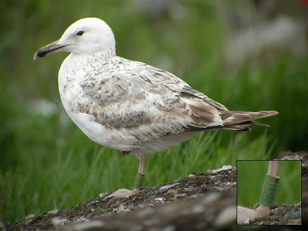 Larus cachinnans 2CY 531P May 21 2003, Lubna, Poland. Picture: Ruud Altenburg. Green 531P and metal DN12635. Bird ringed as pullus on May 10 2002 at Jankowice Babice Malopolskie, Poland. Bird in active complete moult: new MC, new inner GC, new LLC and growing upper tertials. |