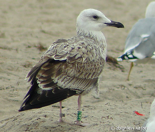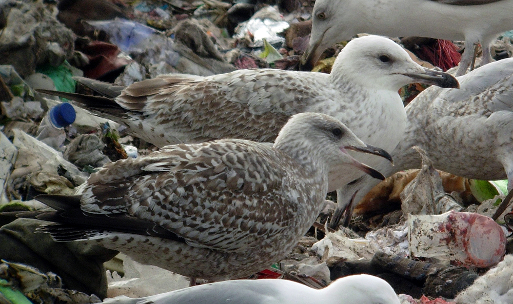 Larus cachinnans hybrid 1CY-2CY 74P1 October 2006 & March 2007, Poland & Germany. Picture: Zbigniew Kajzer & Armin Deutsch.
