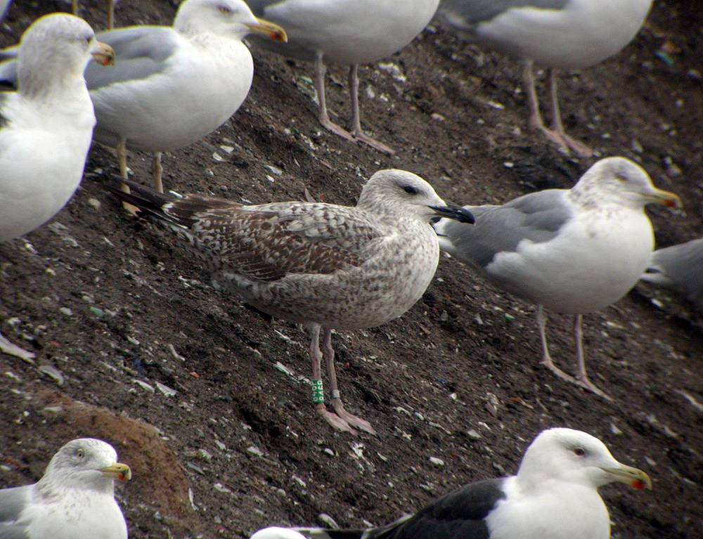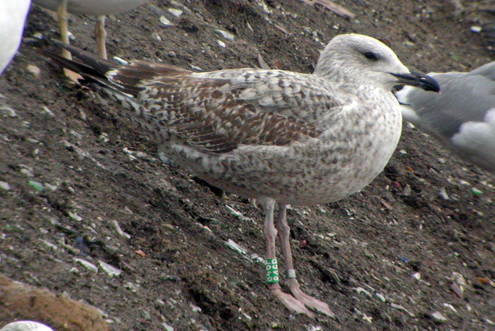 Larus cachinnans hybrid 2CY 846P January 17 2004, Łubna landfill, Poland. Picture: Ruud Altenburg.
