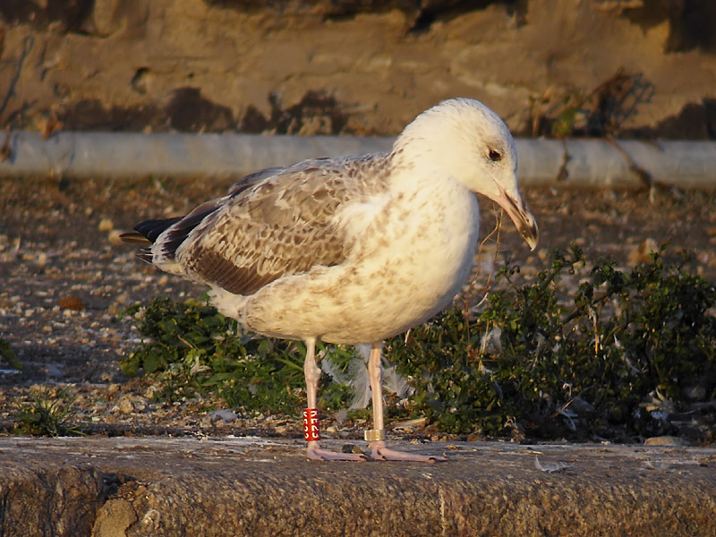 Larus cachinnans 2CY KE23 September 24 2009, Simrishamn, Sweden. Picture: Jörgen Bernsmo. Red KE23, ringed as pullus at Gatovo - Minsk region, Belarus. Complete moult almost finished: P8/-.