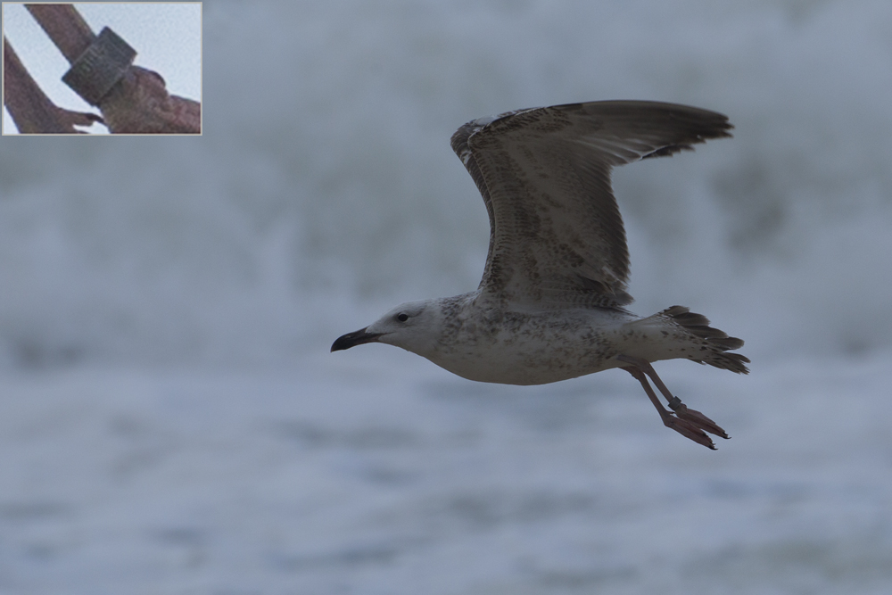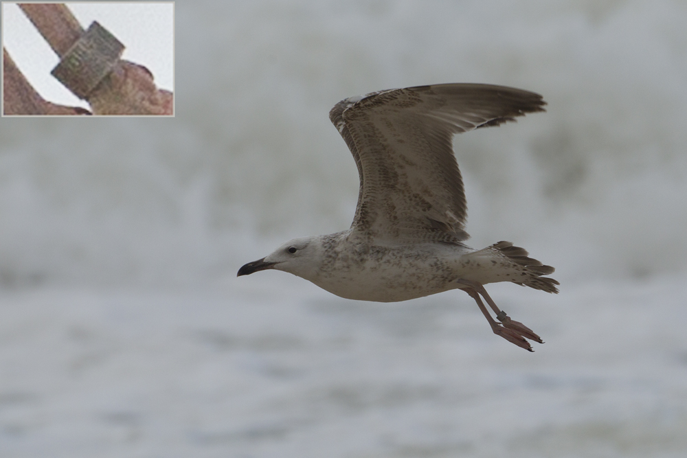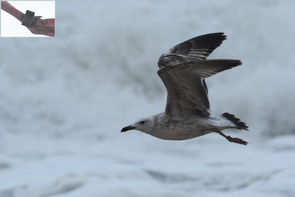 Larus cachinnans 2CY UKK L-010442 March 02 2012, Ashdod, Israel (31°53'13.81"N 34°40'39.98"E). Picture: Amir Ben Dov.