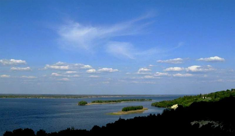 below: view 2 islands from Ivan-Gora (in Kanivs'ke reservoir, 60km S of Kiev).