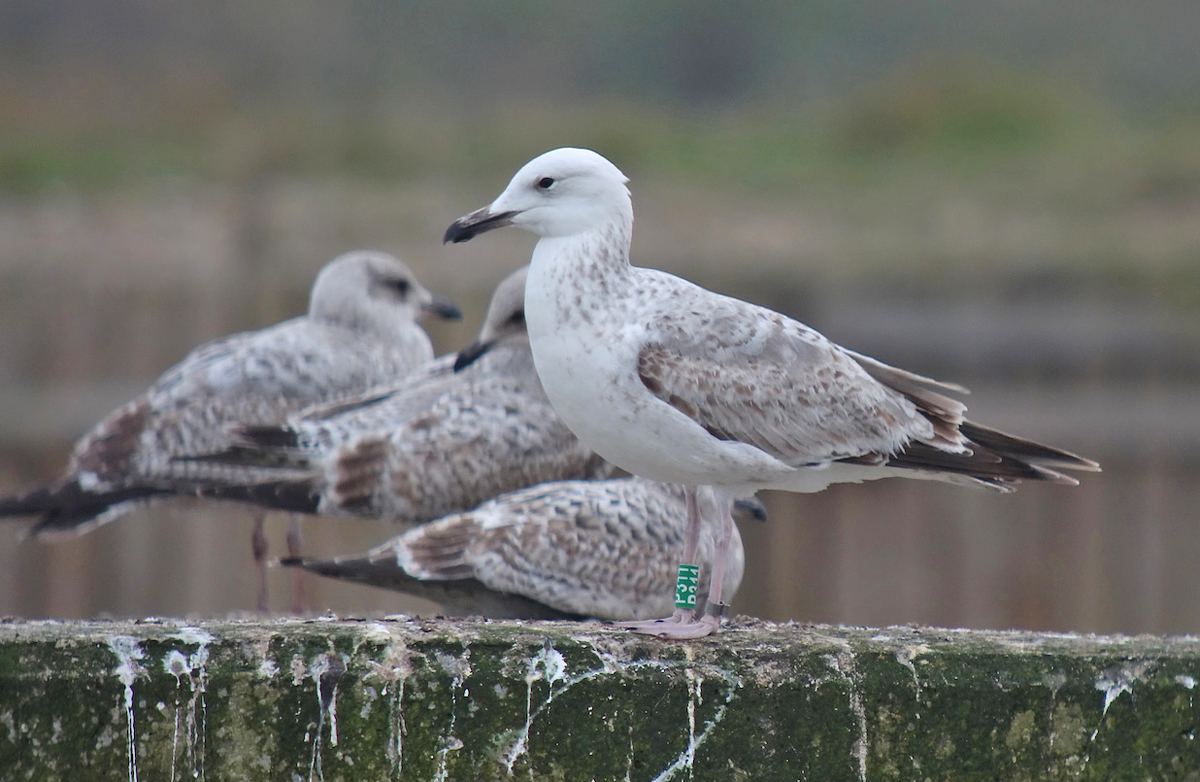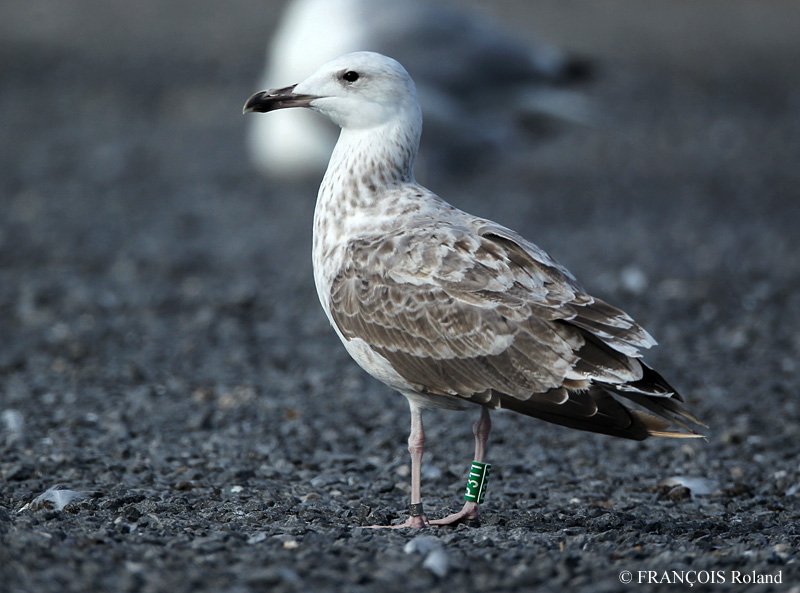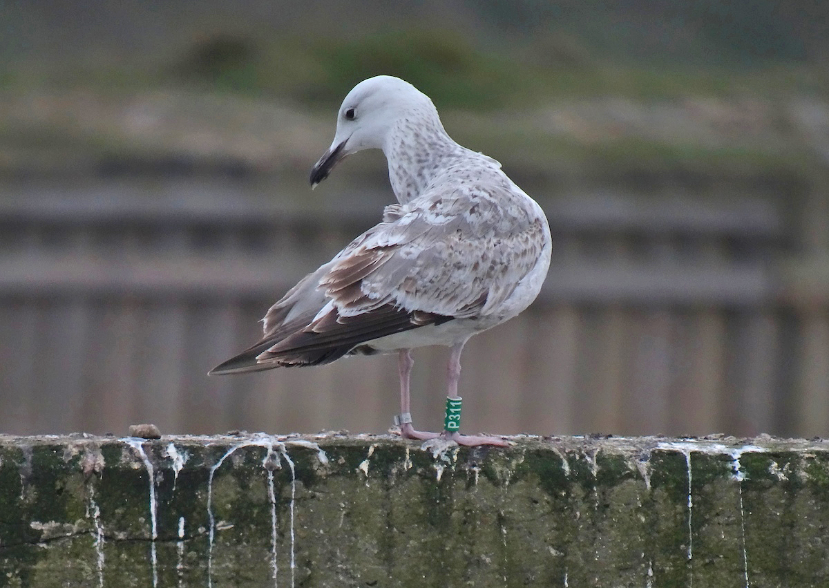 Larus cachinnans 2CY P311 April & August 2014, Walberswick, Suffolk & Oostende, Belgium. Picture: Brian Small & Roland Francois. Green P311, ringed as pullus on May 24 2013 at Kozielno, Paczkow, S-SW Poland, (50°28' N, 16°58' E). Ringing data: