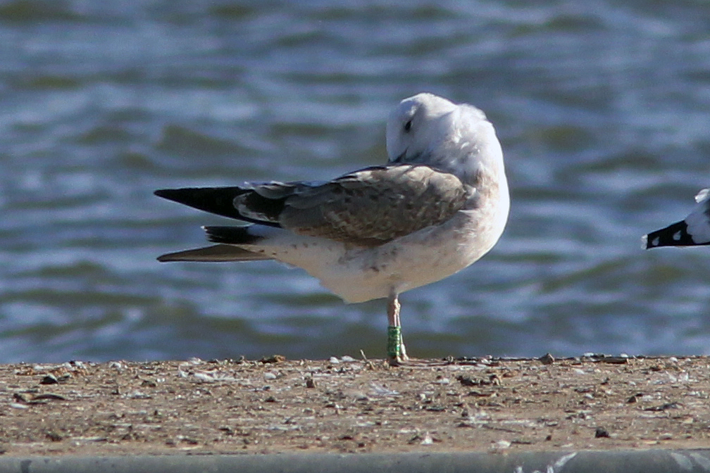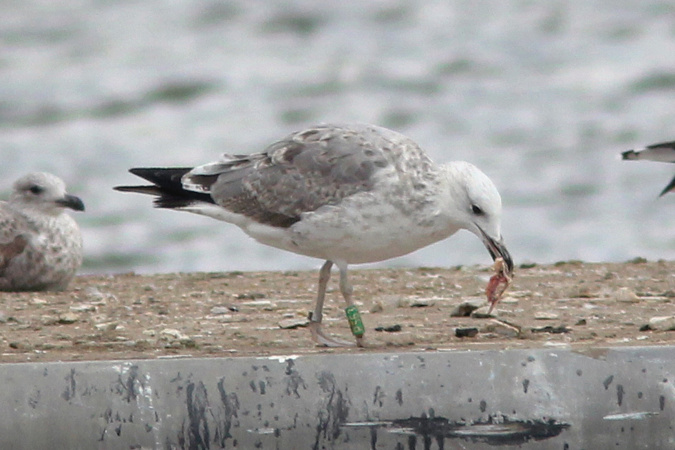 Larus cachinnans 2CY P553 October 29 2013, Visé, Belgium. Picture: Walther Leers. Green P553 and metal DN29553, ringed as pullus on June 04 2012 at Wytyckie, Wytyczno, Urszulin, Poland ( ), by ringer Łukasz Bednarz. Recoveries: No white mirror on 2nd gen P10.