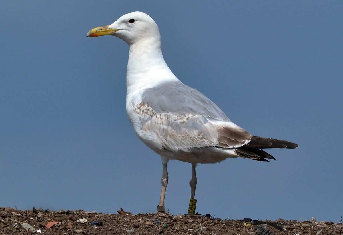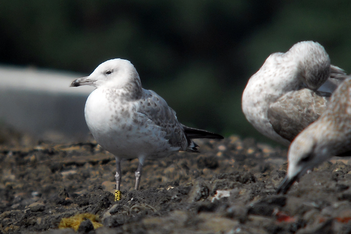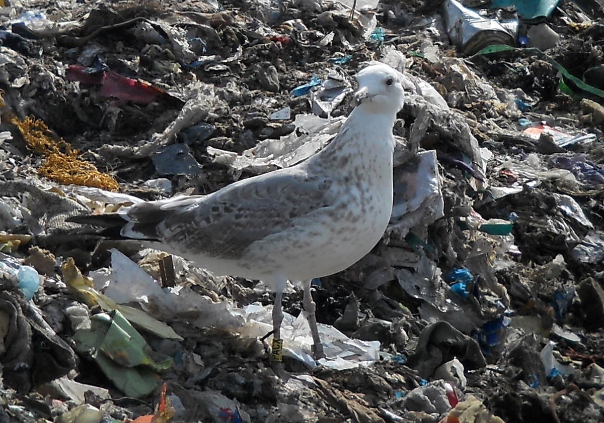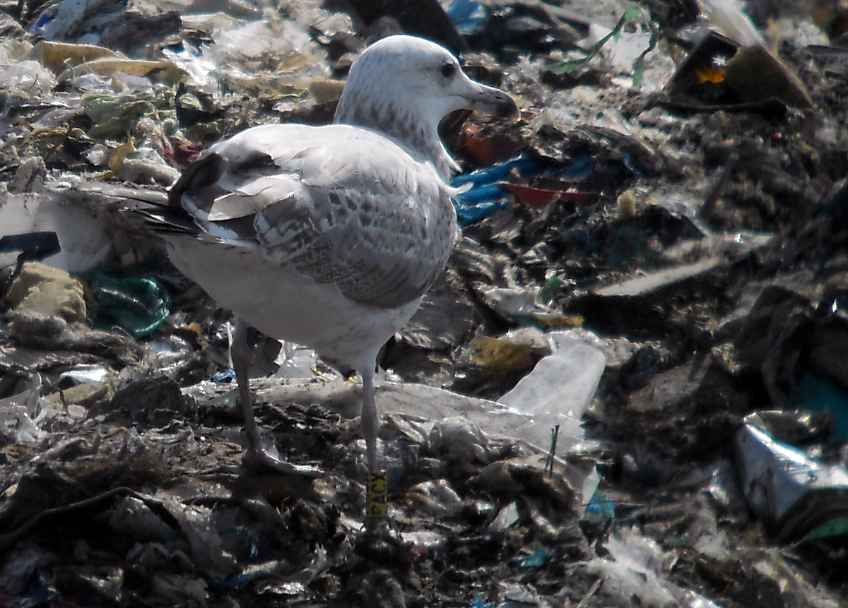 Larus cachinnans 2CY-4CY PACX September 2010 - March 2012, Deponie Pohlsche Heide - Minden, Germany (52°23'05N, 08°46'45E). Picture: Armin Deutsch. Yellow PACX and metal (PLG) DN25320, ringed as pullus on May 13 2009 at Zwirownia, Zakole, Poland, (50°02' N, 19°28' E). This is a mixed breeding colony in S Poland (near Jankowice), with most birds breeding here cachinnans, but in this area also records of very few michahellis are possible (see PDF). PACX is classic cachinnans. Recoveries: