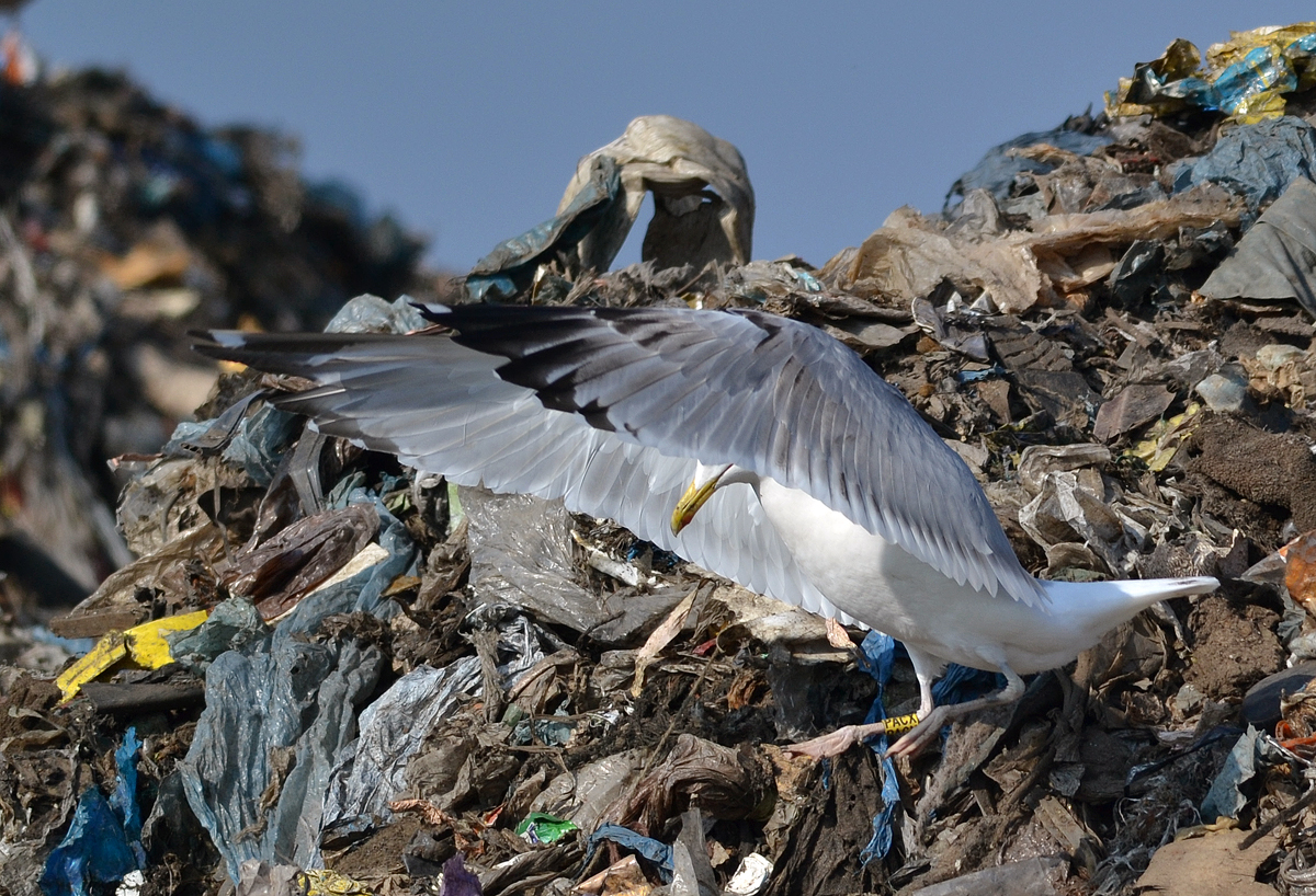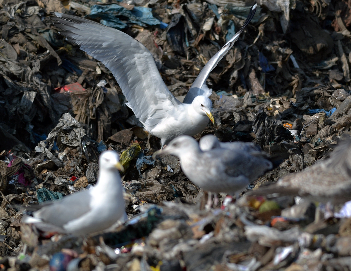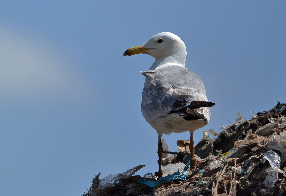 below: cachinnans 4CY PACX March 22 2012, Deponie Pohlsche Heide - Minden, Germany (52°23'05N, 08°46'45E). Picture: Armin Deutsch. Adult-like plumage in resting bird, but when wings are raised, obvious immature secondaries and greater primary coverts. Note relatively short pale tongue and broad sub-terminal band on 3rd gen P10 and no mirror on P9.