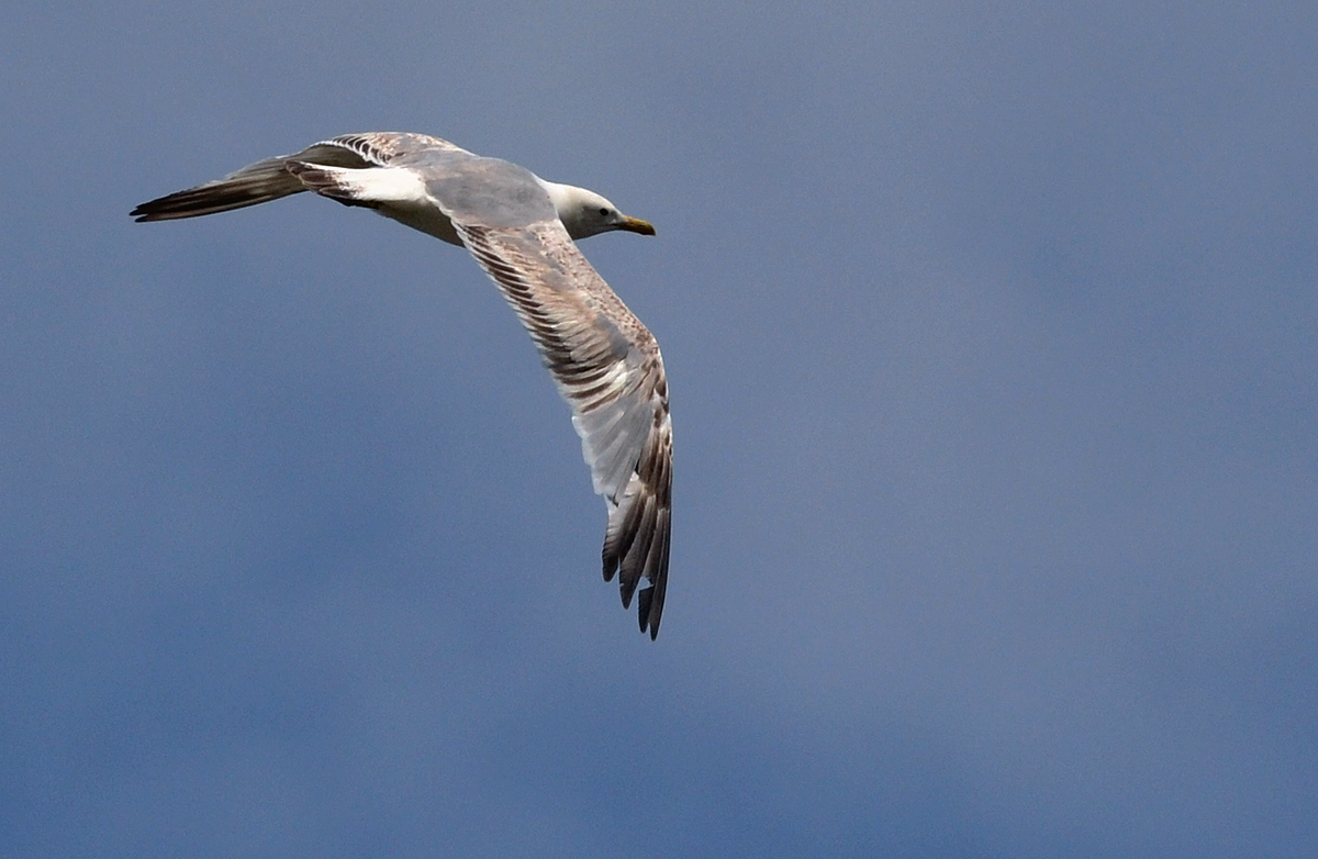 below: cachinnans 3CY PACX June 03 2011, Deponie Pohlsche Heide - Minden, Germany (52°23'05N, 08°46'45E). Picture: Armin Deutsch. Moulting inner primaries P1-P2, now adult-like grey, P5-P10 old 2nd gen. Note pattern on old 2nd gen secondaries and tail.