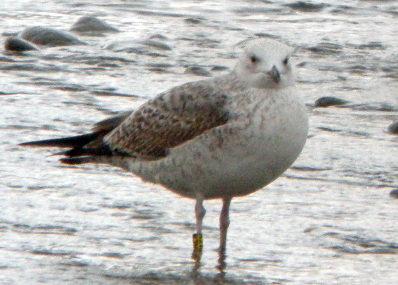 Larus cachinnans 2CY PAEN January 06 2010, Vienna, Austria. Picture: Wolfgang Schweighofer. Yellow PAEN and metal PLG DN-25346; ringed as pullus on May 21 2009, at Jankowice Babice Malopolskie Poland (50,03333 19,46667). Records: Post-juvenile moult included: inner GC, inner MC, inner LLC, and several of the inner LC. |