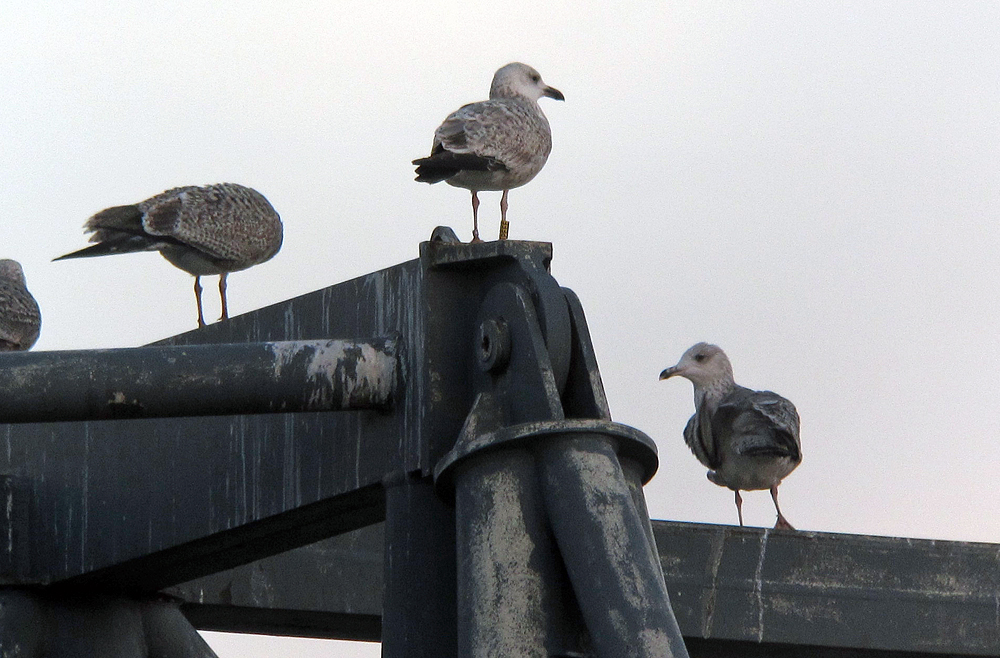 below: cachinnans 2CY PEEE January 25 2012, Osthafen - Minden, Germany (52°18'N, 08°56'E). Picture: Armin Deutsch. Bird with extensive post-juvenile moult.