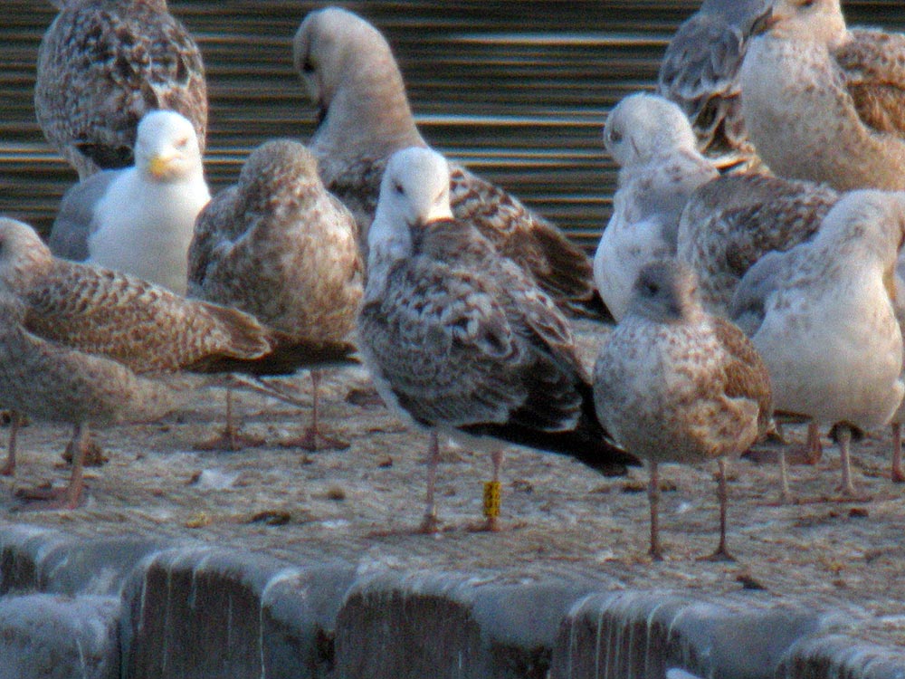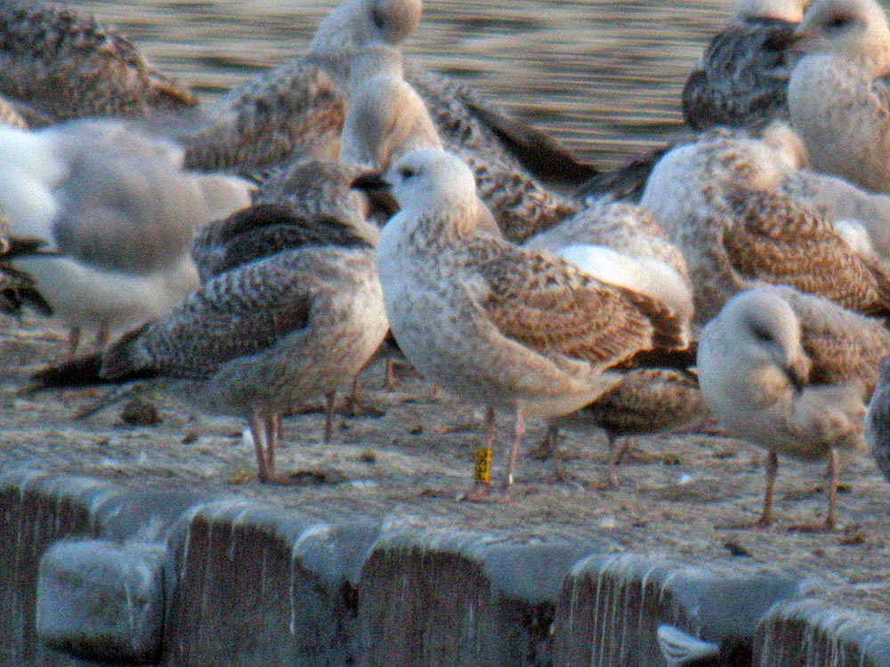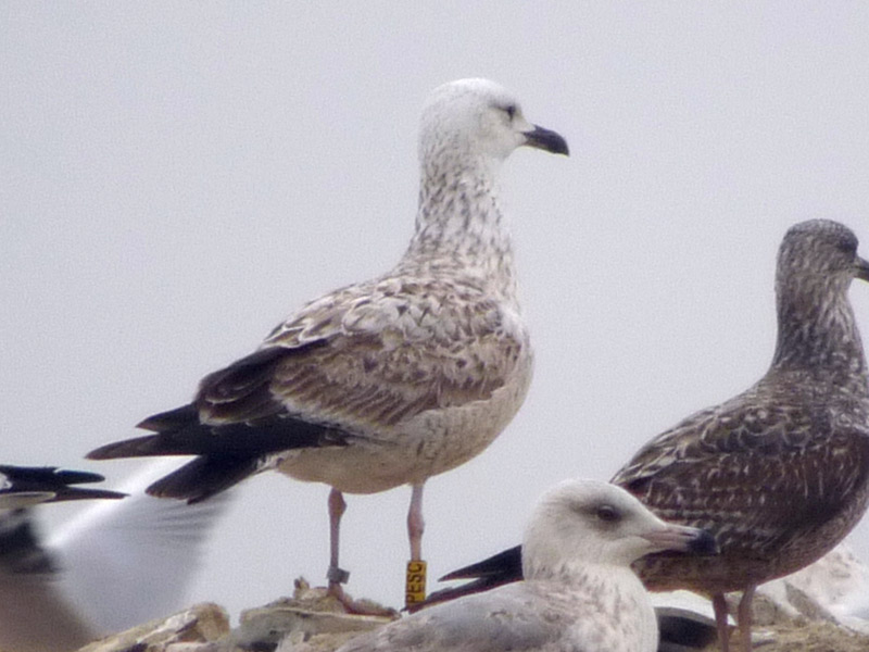 Larus cachinnans 2CY PESC February - March 2012, W. France. Picture: Alain Fossé & David Madiot. Yellow PESC and metal PLG DN-27031; ringed as pullus on May 24 2011 at Jankowice Babice Malopolskie, Poland (50,03 19,47). Recoveries: