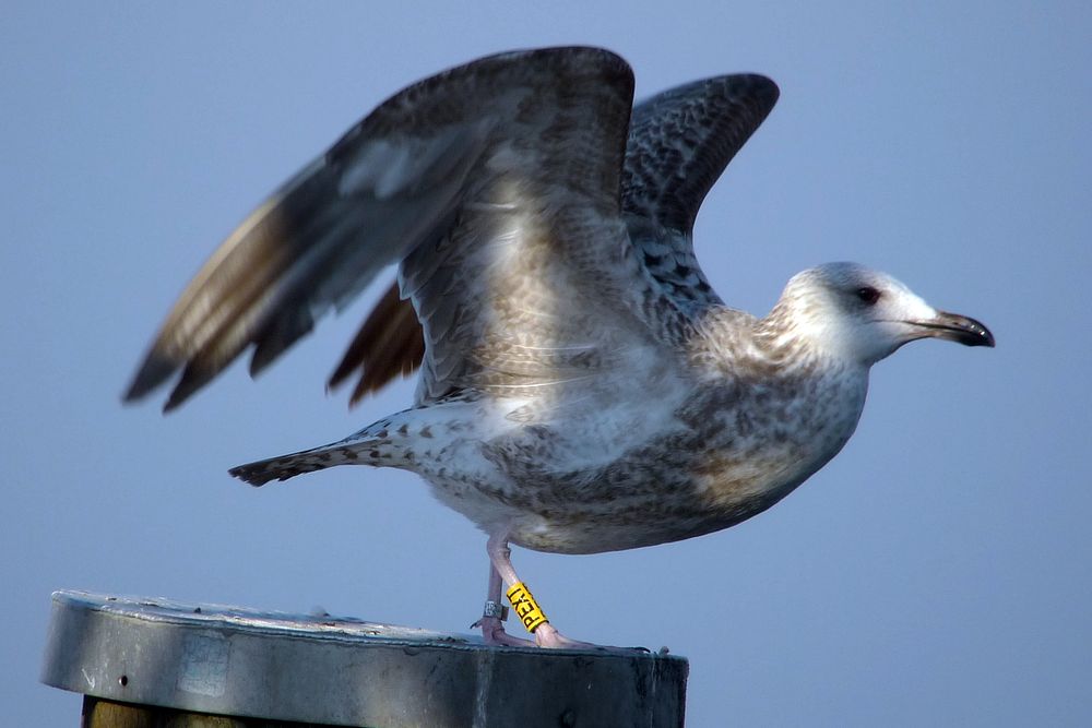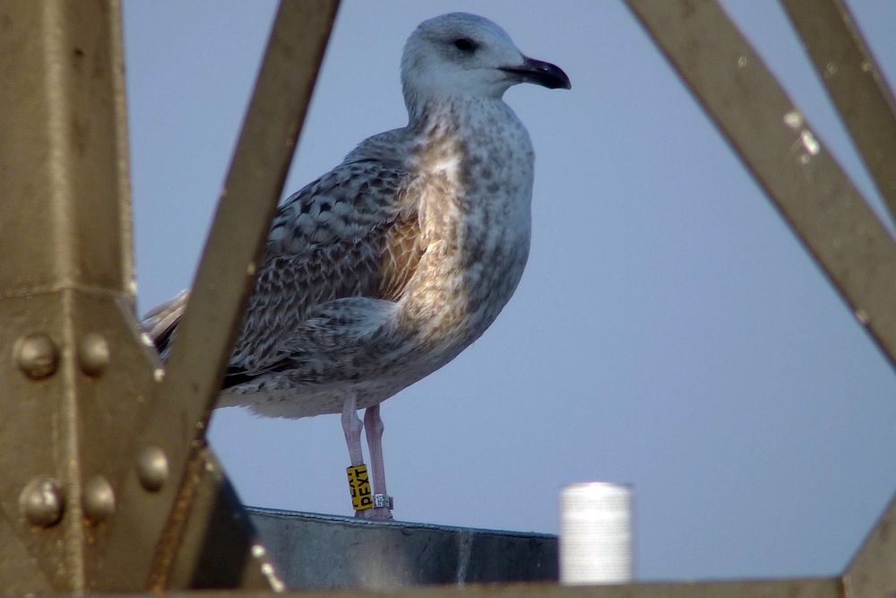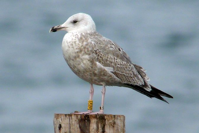 Larus cachinnans 2CY-3CY PEXT January 2012 & January 2013, Lake of Constance - Rorschach, Switzerland. Picture: Stephan Trösch. Probably ringed as pullus on May 24 2011, at Jankowice Babice Malopolskie Poland (50,03333N 19,46667E). below: cachinnans 2CY PEXT January 18 2012, Lake of Constance - Rorschach, Switzerland. Picture: Stephan Trösch. Heavy looking bill. below: cachinnans 3CY PEXT January 2013, Lake of Constance - Rorschach, Switzerland. Picture: Stephan Trösch. MC, inner GC, central LLC and upper TT replaced in partial autumn moult. |