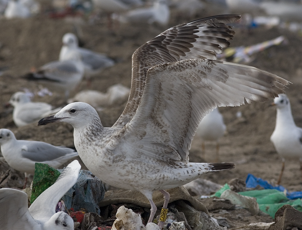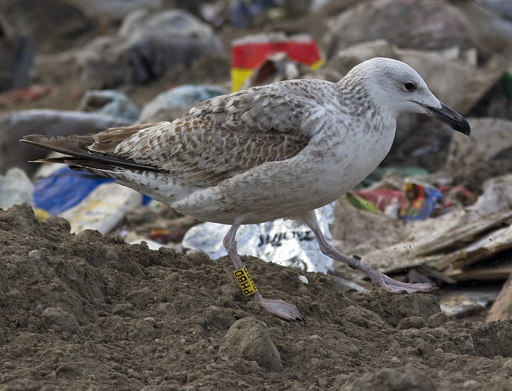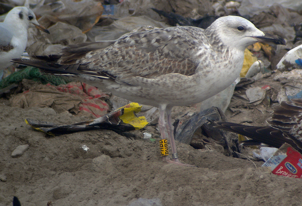 Larus cachinnans 2CY PHBD February 19 2012, Zagreb, Croatia. Picture: Mars Muusse & Ruud Altenburg. Bird ringed yellow PHBD & metal PLG DN-27156, ringed as pullus on May 24 2011 at Jankowice Babice Malopolskie Poland (50,03333 19,46667).