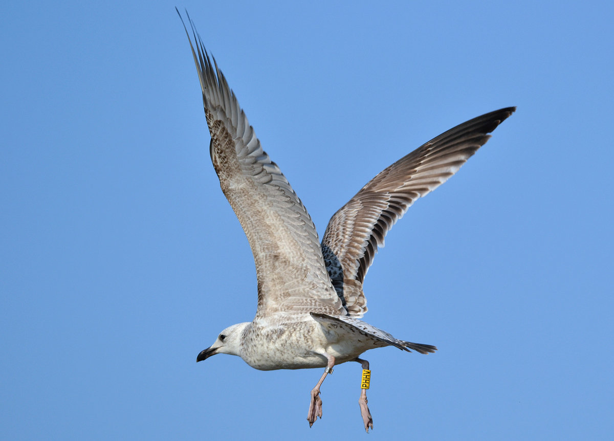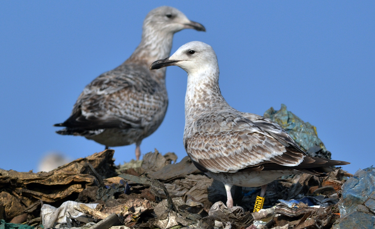 Larus cachinnans 2CY PHHV March 22 2012, Deponie Pohlsche Heide - Minden, Germany (52°23'05N, 08°46'45E). Picture: Armin Deutsch. Yellow PHEN and metal PLG DN-27228; ringed as pullus on May 26 2011 at Kozielno, Paczkow, S-SW Poland, (50°29' N, 16°58' E). Recoveries: