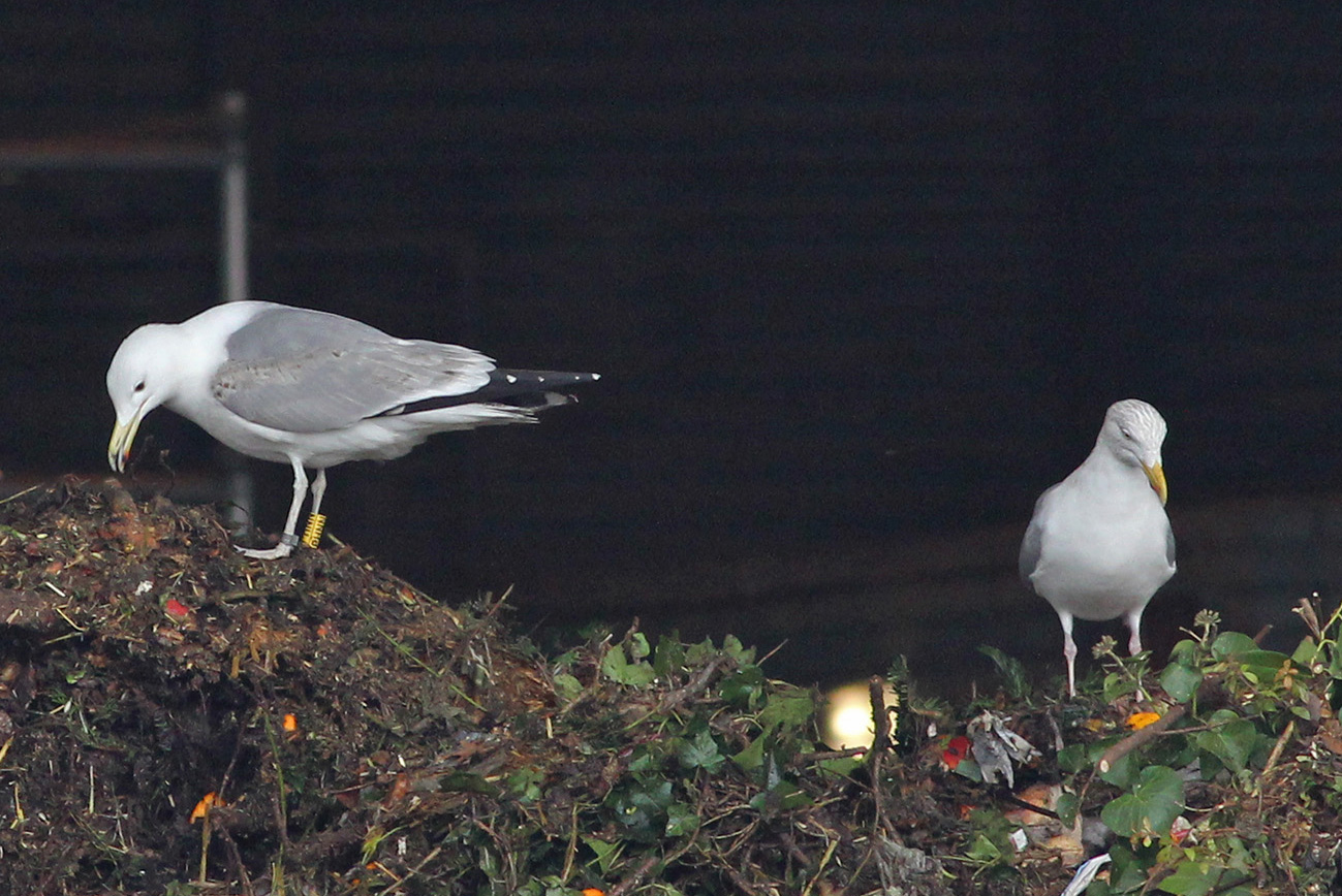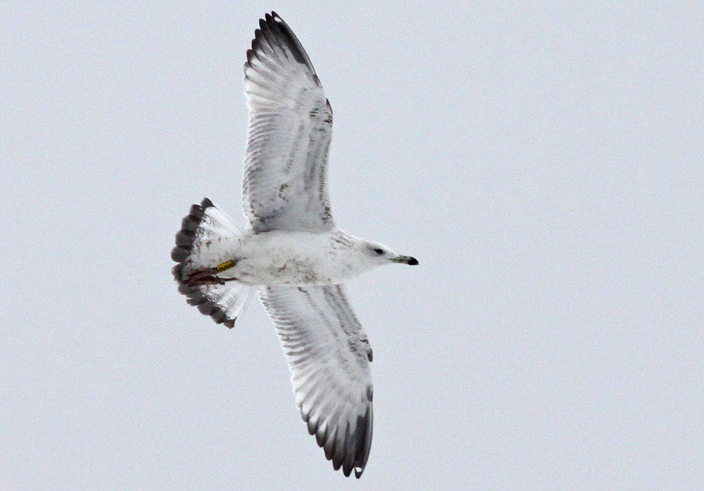 below: cachinnans 4CY PHNN February 06 2014, Terschelling, the Netherlands. Picture: Jacob Jan de Vries. Dark eyed bird. Note black markings in tail and brown markings on wing coverts.