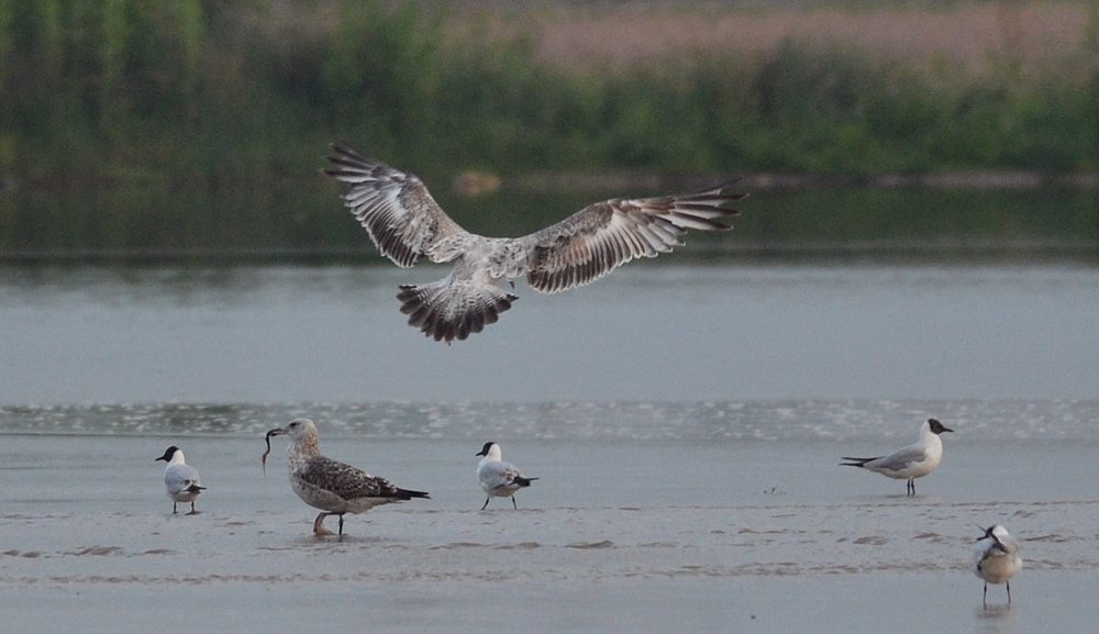 In this area are mixed breeding colonies (near Katowice), with far most birds breeding here are cachinnans, but in this area also records of very few michahellis from the south (e.g. ringed female from Italy) and argentatus from eastern Germany are possible (see PDF). PKAC is classic cachinnans. below: cachinnans 2CY PKAC June 06 2012, Schinna, Germany (52°32'05N, 09°05'52E). Picture: Armin Deutsch. Bird in complete moult: P1-P3 new, P4-P5 growing, P6 missing, P7-P10 old juvenile. All secondaries and rectrices still juvenile. New wing-coverts are boldly barred. below: cachinnans 2CY PKAC November 19 2012, Deponie Pohlsche Heide - Minden, Germany (52°23'05N, 08°46'45E). Picture: Armin Deutsch. At end of partial autumn moult. Compare to images from June and note all MC replaced again, now looking greyish. Also replaced: upper TT1-2, inner GC1-3 and probably a few single lesser coverts. |