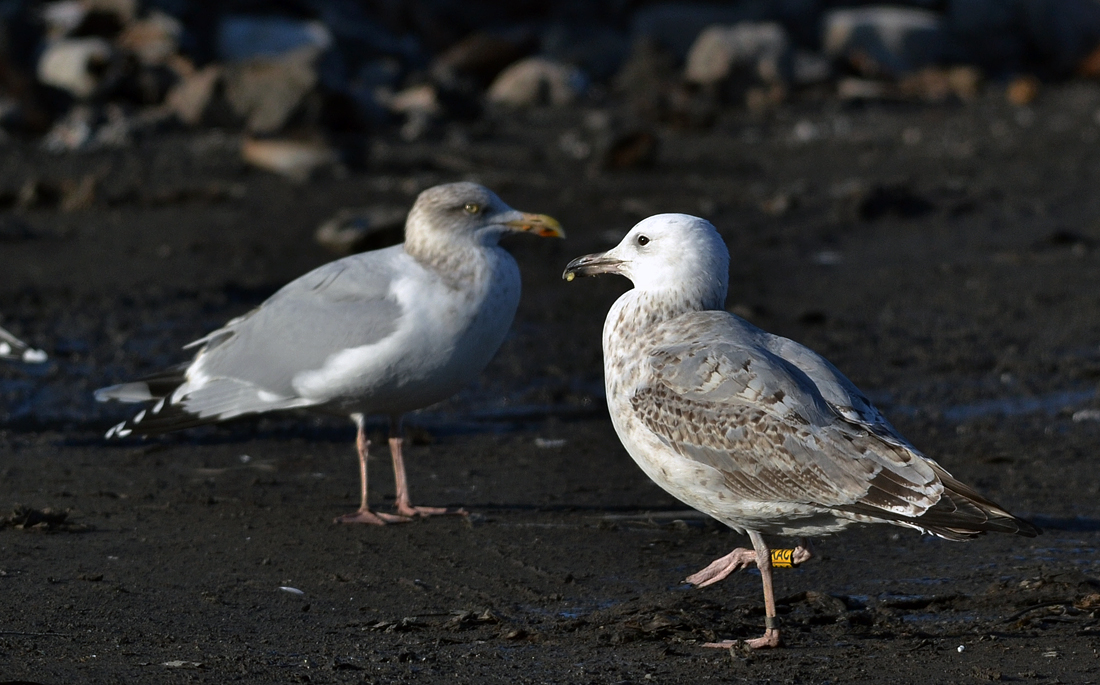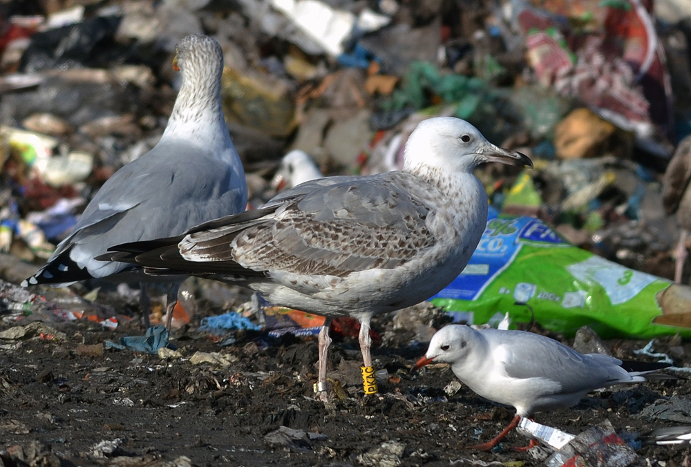 Larus cachinnans 2CY PKAC June 06 & November 19 2012, Schinna & Minden, Germany. Picture: Armin Deutsch. Yellow PKAC and metal PLG DN-27641; ringed as pullus on May 26 2011 at Kozielno, Paczkow, S-SW Poland, (50°29' N, 16°58' E). Recoveries: