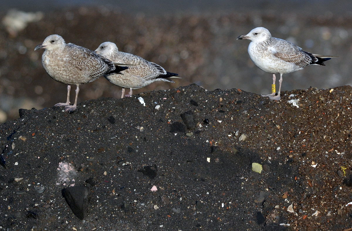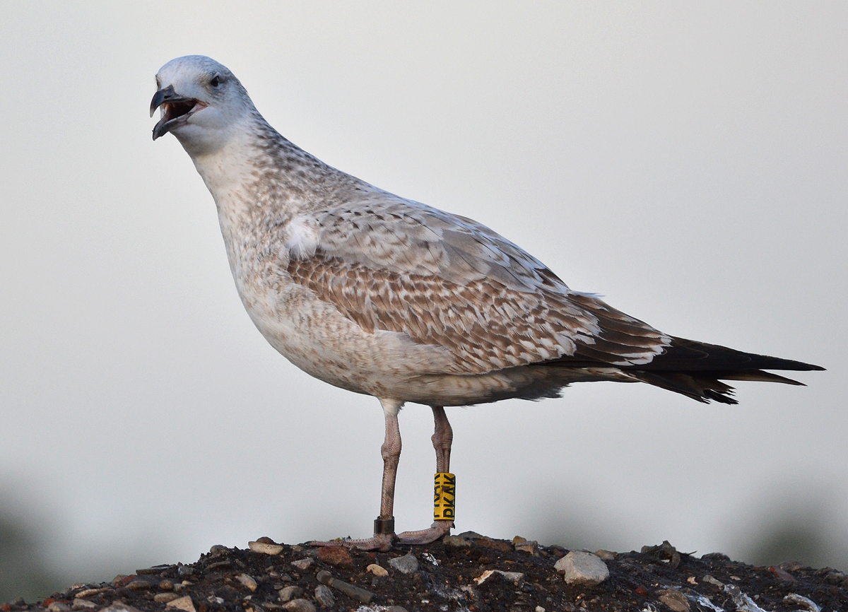 Larus cachinnans 2CY-3CY PKAK January 06 2012 & July 08 2013, Schinna & Minden, Germany. Picture: Armin Deutsch. Yellow PKAK and metal PLG DN-27645; ringed as pullus on May 26 2011 at Kozielno, Paczkow, S-SW Poland, (50°29' N, 16°58' E). Recoveries: