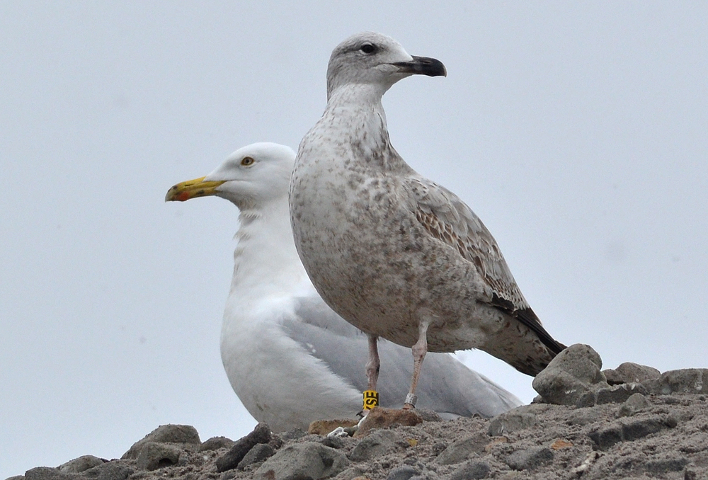 Larus cachinnans 2CY PKSE March 21 2013, Deponie Pohlsche Heide - Minden, Germany (52°23'05N, 08°46'45E). Picture: Armin Deutsch. Yellow PKSE and metal PLG DN-28698; ringed as pullus on May 25 2012 at Kozielno, Paczkow, S-SW Poland, (50°28' N, 16°58' E). Recoveries:
