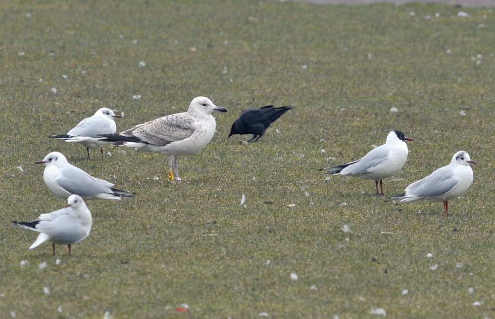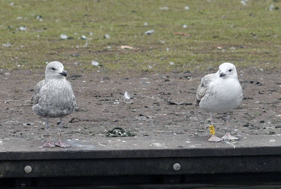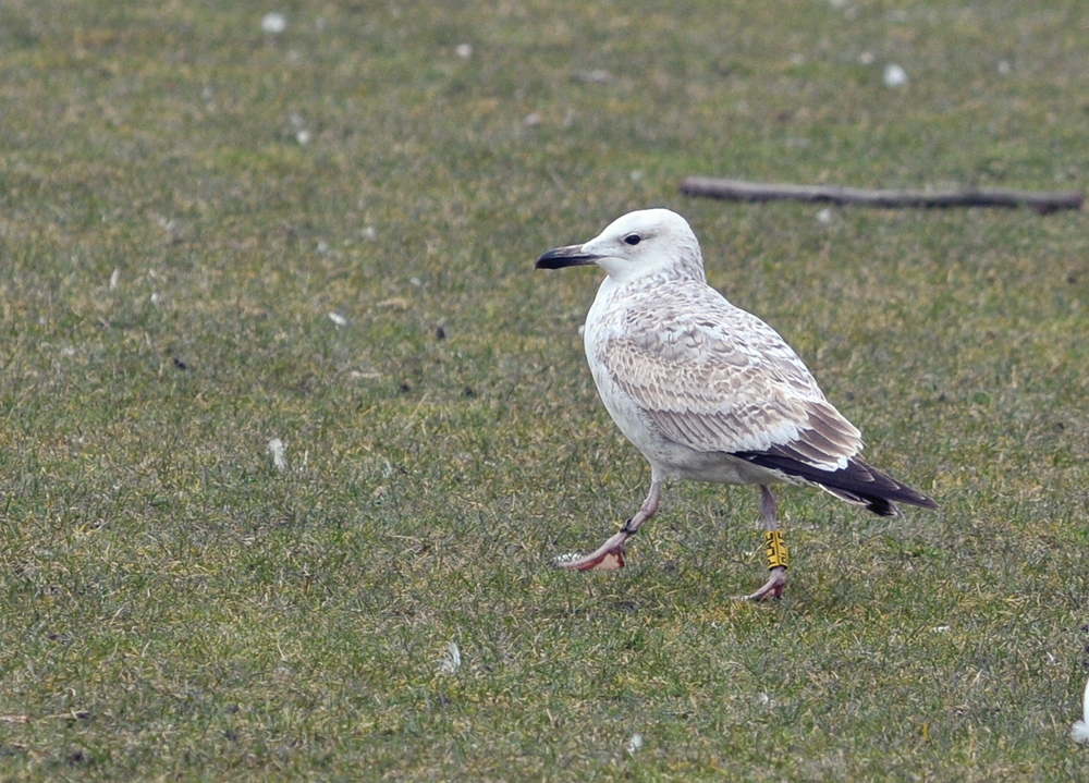 Larus cachinnans 2CY PLAE February 28 2013, Rotterdam, the Netherlands. Picture: Theo Muusse. Bird ringed yellow PLAE & metal PLG DN-28800, ringed as pullus on May 25 2012, at Kozielno, Paczkow, S-SW Poland, (50°28' N, 16°58' E). All coverts and tertials still juvenile.