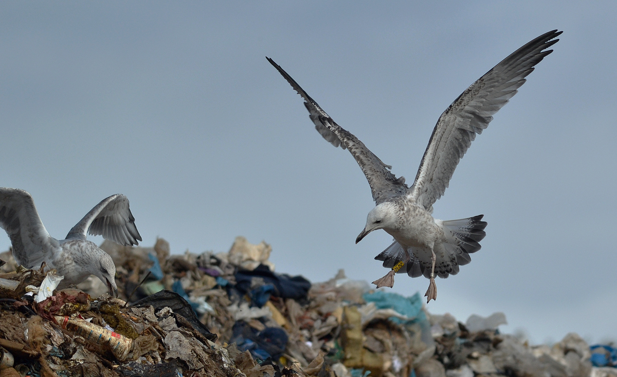 Larus cachinnans 2CY PLDC September 20 2013, Deponie Pohlsche Heide - Minden, Germany (52°23'05N, 08°46'45E). Picture: Armin Deutsch. Yellow PLDC and metal PLG DN-28846; ringed as pullus on May 25 2012 at Kozielno, Paczkow, S-SW Poland, (50°28' N, 16°58' E). Recoveries: