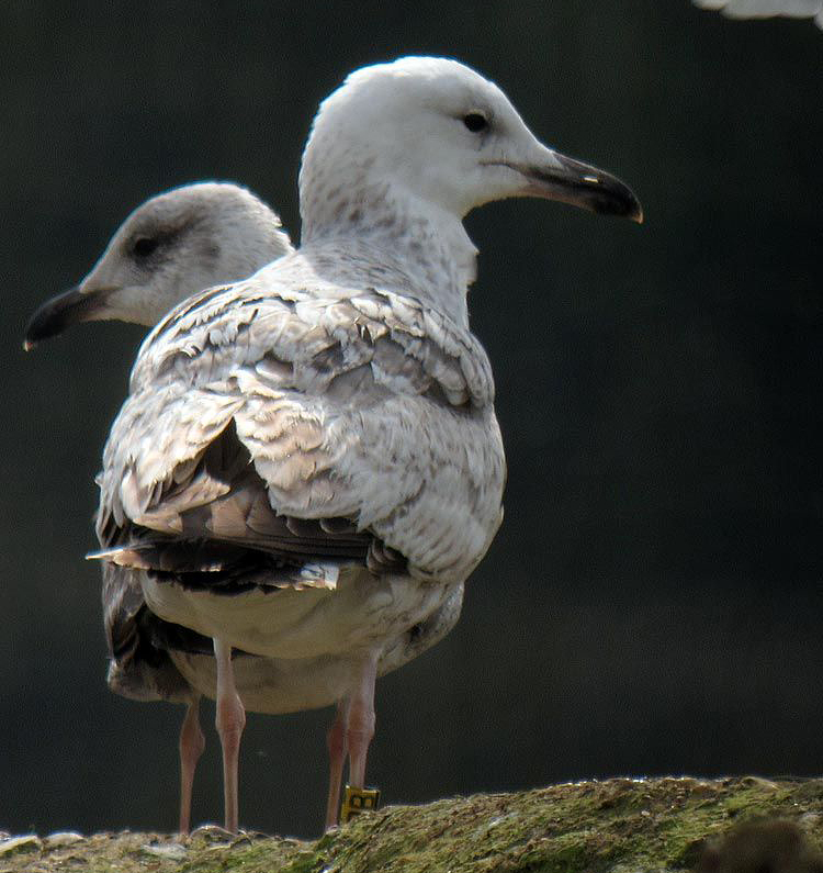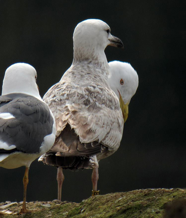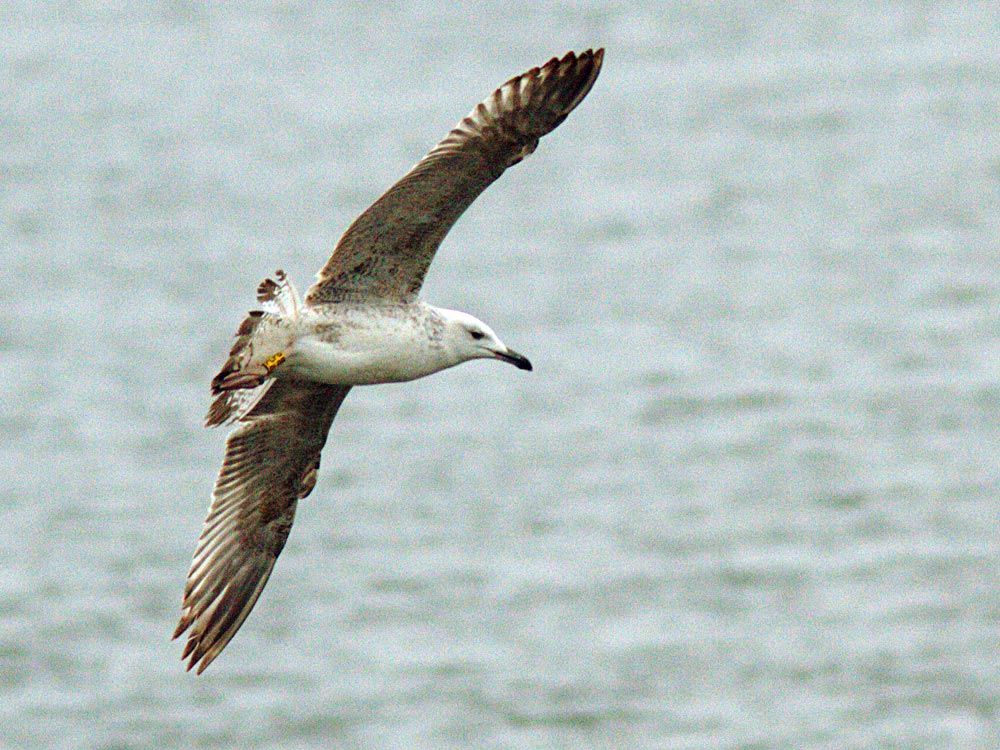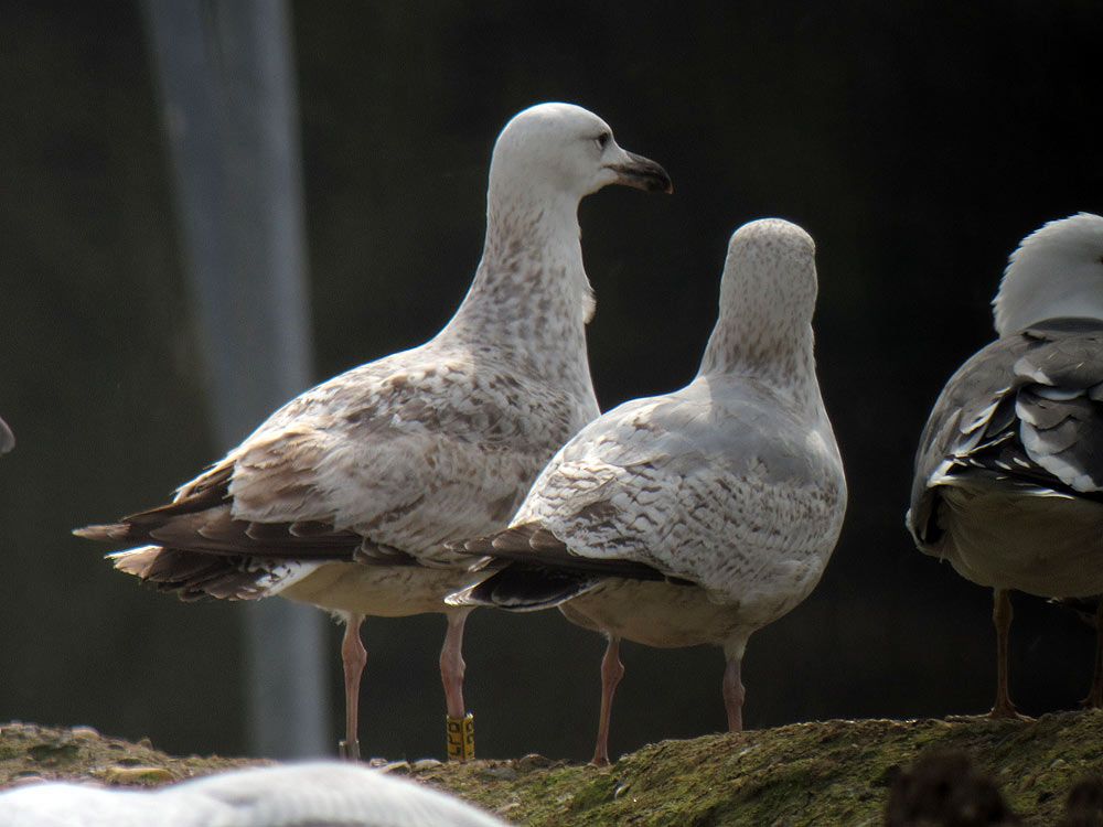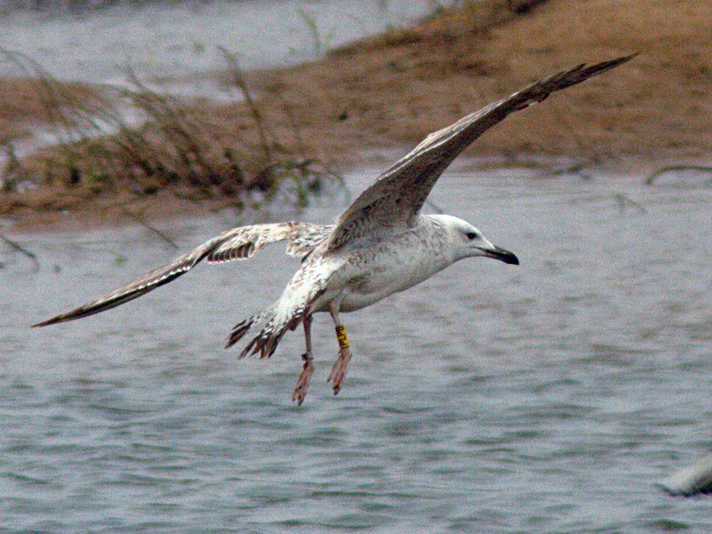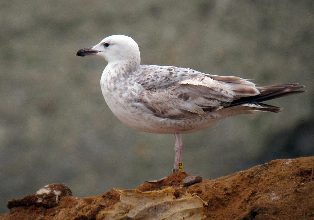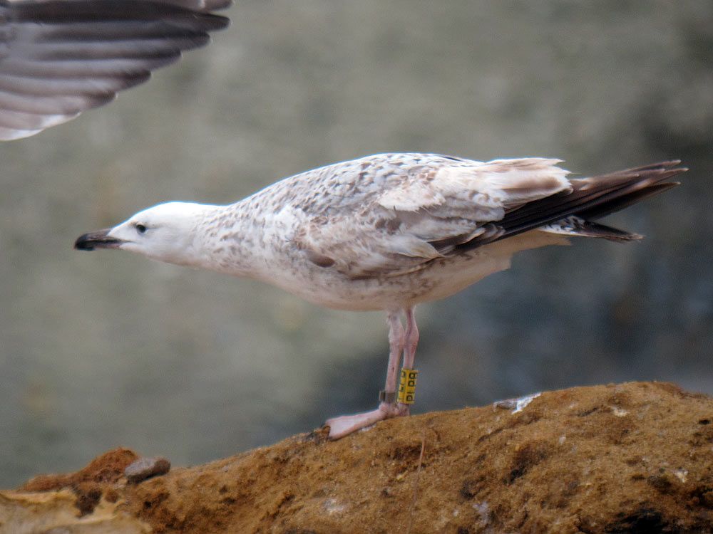 Larus cachinnans 2CY PLPB March 03-15 2013, River Loire, Maine-et-Loire, France. Picture: Alain Fossé & Francky Recoquillon. Yellow PLPB; ringed as pullus on May 29 2012 at Jankowice Babice Malopolskie Poland (50,03333 19,46667). Very bleached bird.