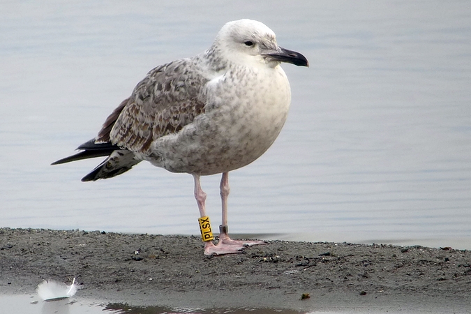Larus cachinnans 2CY PLSX January 2013, Lake of Constance, Switzerland. Picture: Stephan Trösch. Yellow PLSX, probbaly ringed as pullus on May 29 2012 at Jankowice Babice Malopolskie, Poland (50,03333N 19,46667E). No tertials but several inner coverts replaced in post-juvenile moult. |