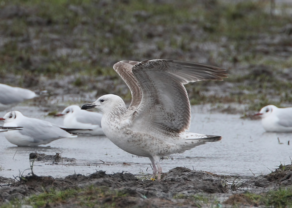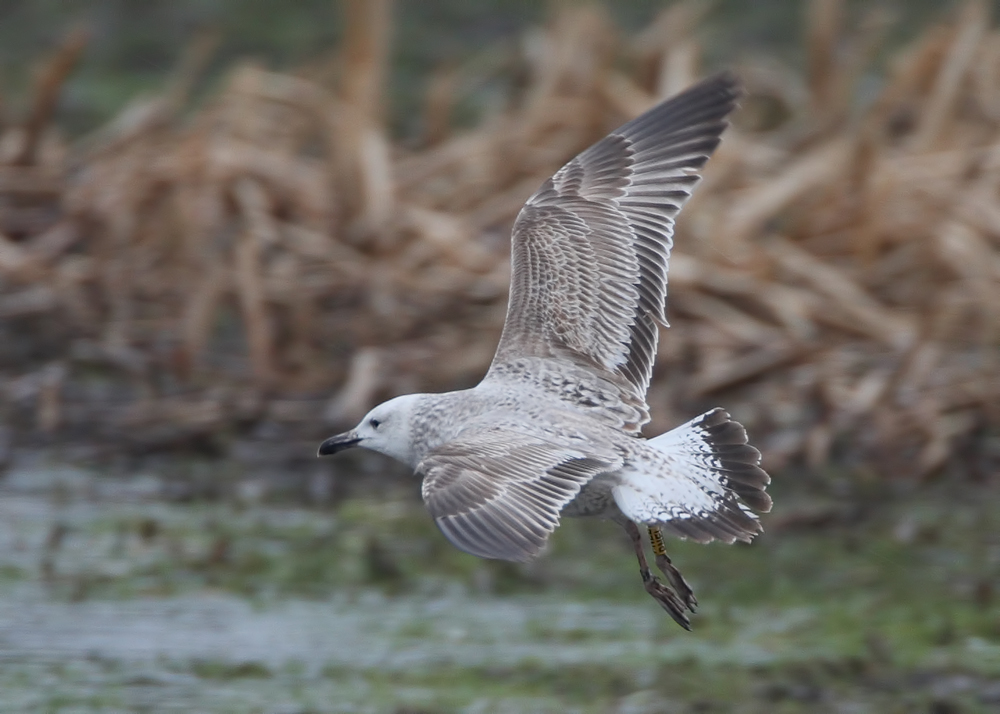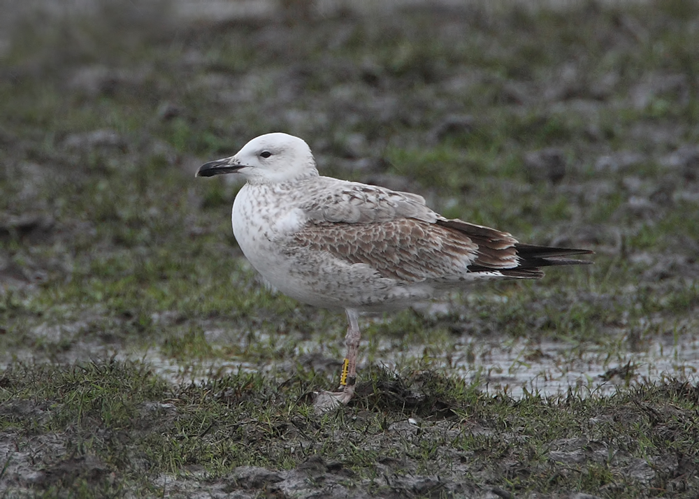 Larus cachinnans 2CY PNEL January 26 2014, Dartford, Kent, UK. Picture: Michael Southcott. Bird ringed yellow PNEL, ringed as pullus on May 24 2013 at Kozielno, Paczkow, S-SW Poland, (50°28' N, 16°58' E). All scaps replaced, all coverts and tertials still juvenile.