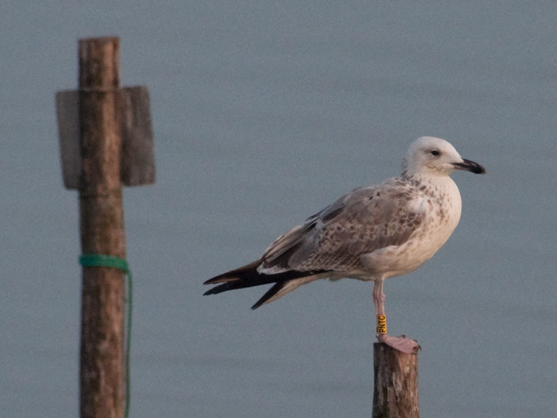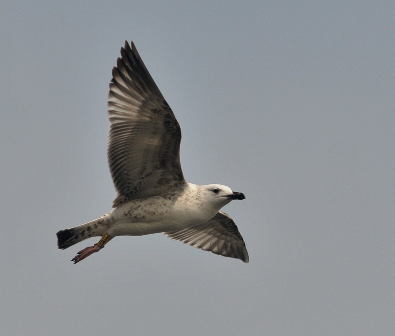 Larus cachinnans 2CY PNTC April & September 2014, the Netherlands. Picture: Theo Muusse & Eric Roeland. Bird ringed yellow PNTC, ringed as pullus on May 24 2013 at Kozielno, Paczkow, S-SW Poland, (50°28' N, 16°58' E). below: cachinnans 2CY PNTC September 28 2014, Oostvaardersdijk, the Netherlands. Picture: Eric Roeland. Complete moult finished. Partial autumn moult includes inner coverts and upper tertials. Many scaps already grey. below: cachinnans 2CY PNTC April 02 2014, Dordrecht, the Netherlands. Picture: Theo Muusse. At river Merwede. Still P1 present. Several inner coverts replaced. |