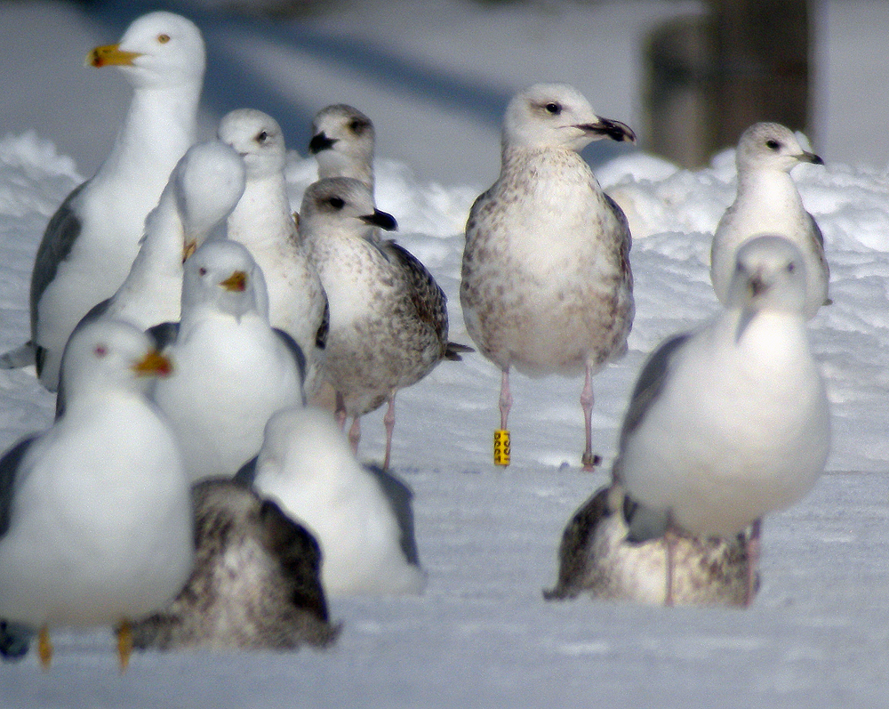 Larus cachinnans 2CY PSST February 17 2012, Zagreb, Croatia. Picture: Ruud Altenburg. Bird ringed yellow PSST & metal UKK L-011076, ringed as pullus on June 10 2011 at Cherkasy Kreminchuk reservoir Ukraine (49,401 32,15). Quite some spots in side of the neck. |