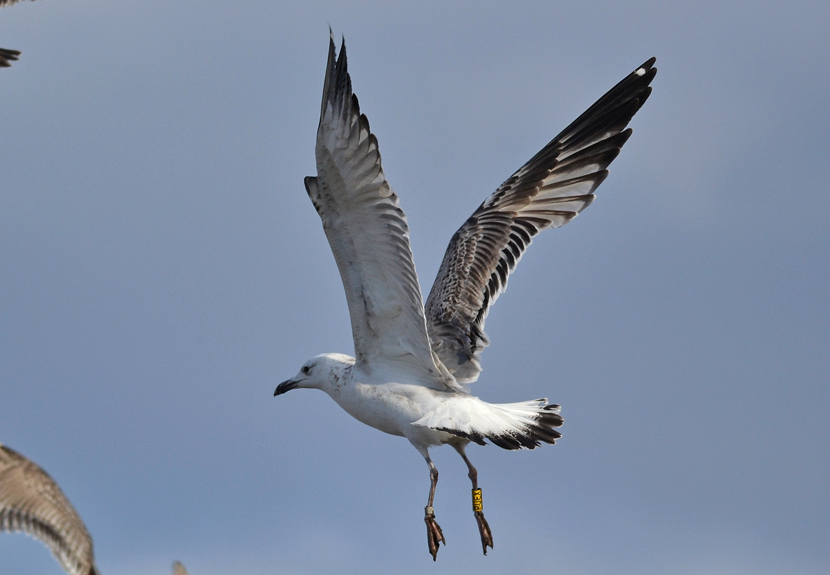 Larus cachinnans 2CY-3CY PUEX February 2011 & February 2012, France & Germany. Picture: Alain Fossé & Armin Deutsch. Yellow PUEX and metal Kiev (UKK) L-009634; ringed as pullus on June 05 2010, at Cherkasy Kreminchuk reservoir, Ukraine (49,24'00"N 32,09'00"E). Recoveries: