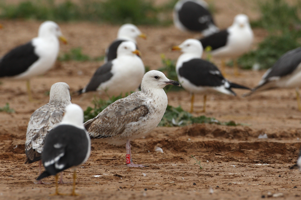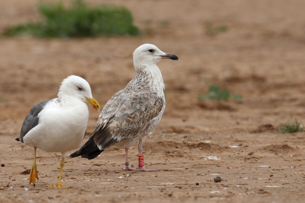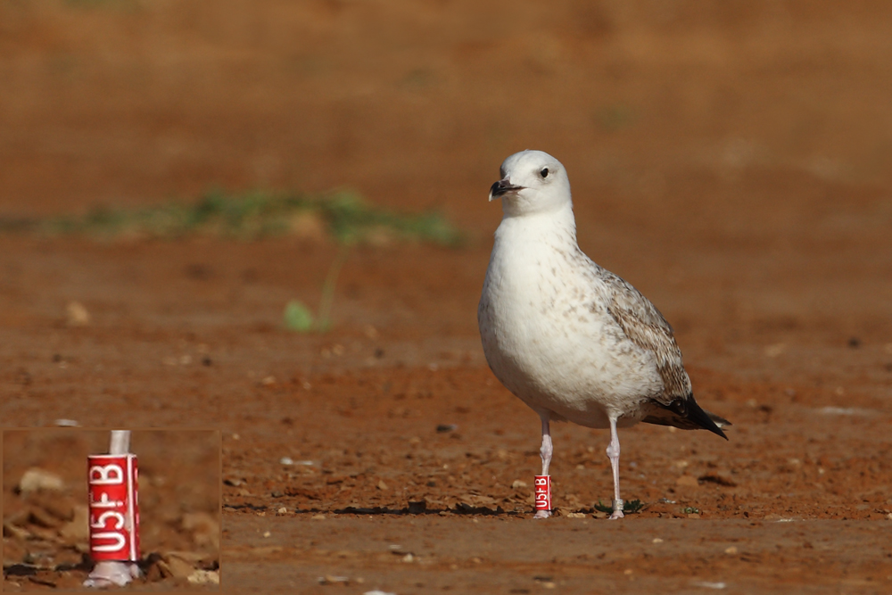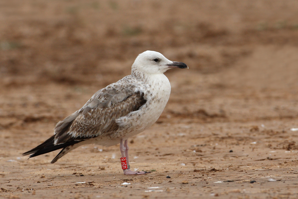 Larus cachinnans 2cy U5FB March 13-16 2010, Ashdod, Israel. Picture: Amir Ben Dov. Ringed in Israel, after taken into hospital. Cachinnans can sometimes appear more chocolate brown. |