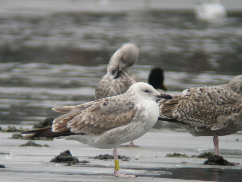 Larus cachinnans 2CY V5AA February 19 2006, Sortedam Søen, Peblingesøen, Denmark. Picture: Lars Adler Krogh. No tertials but few inner coverts replaced. Ringed in Denmark in winter by Kjeld Tommy Pedersen. |