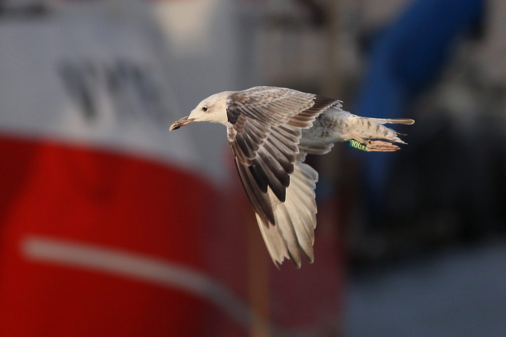 Larus cachinnans 2CY XDDL July 28 2012, Simrishamn, Sweden. Picture: Jörgen Bernsmo. Bird ringed as pullus in Germany, probably Brandenburg. Strongly recalling pure cachinnans, although origin probably from mixed colony. Moult: P6/P9.