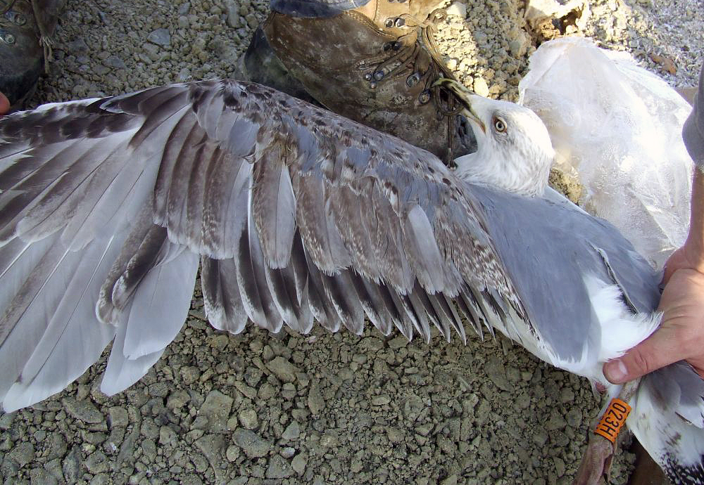 Larus cachinnans 3CY 024H January 16 2011, Jakuševec-Zagreb, Croatia. Picture: ringing team Luka Jurinovic. 2nd winter, ringed at Zagreb landfill. Together with orange 023H, L. michahellis 3CY (2nd winter).