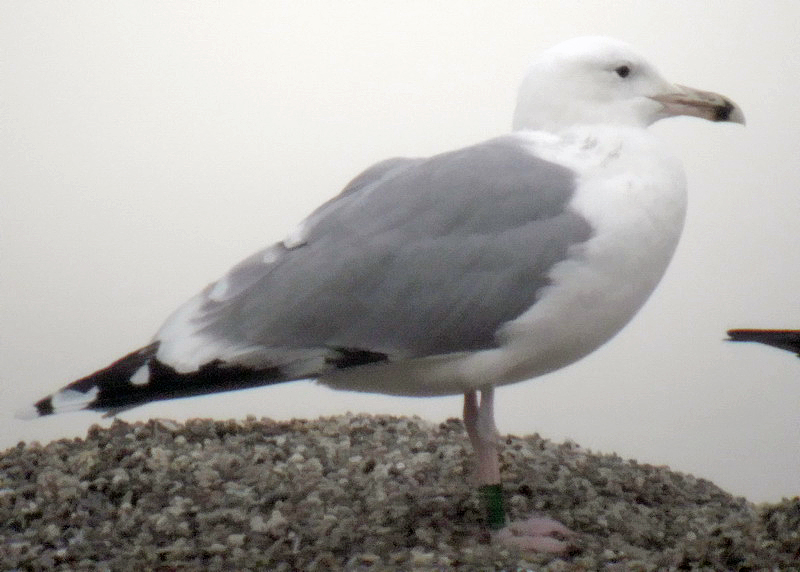 Larus cachinnans 3CY 184P December 24 2009, Wörth, Austria. Picture: Wolfgang Schweighofer. Bird ringed as pullus in May 2007 at Jankowice Babice Malopolskie, Poland. Probably male. A 3cy bird with white tail, bold white spots on primaries and large white mirror on P10; but also dark centres on the greater primary coverts. |