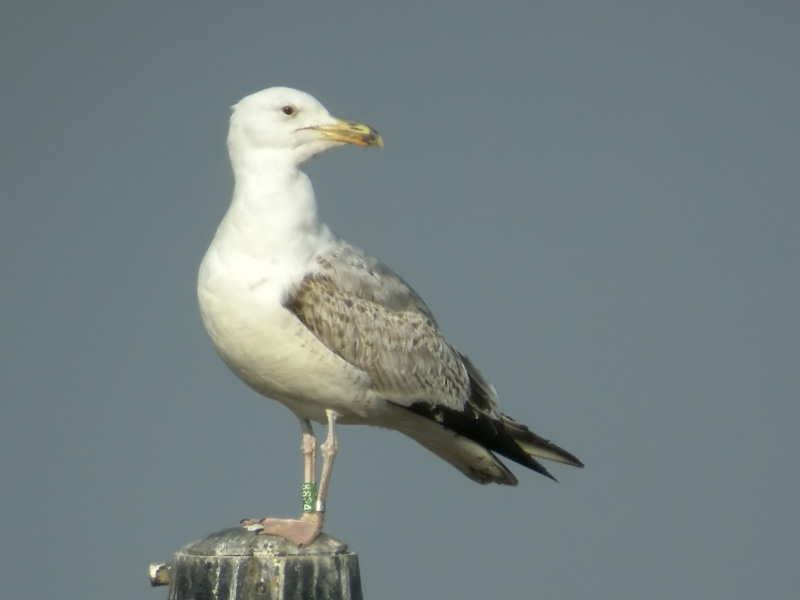 Larus cachinnans 3CY 88P4 April 24 2010, Lubna, Poland. Picture: Michal Rycak. Bird observed April 24 2010 at Łubna dump. 88P4 ringed May 31 2008 as pull in Caspiuan colony - WISŁA river, WILKÓW, LUBELSKIE, POLSKA, ringer Robert RUDOLF. 2nd gen flight feathers. Almost completely grey saddle. |