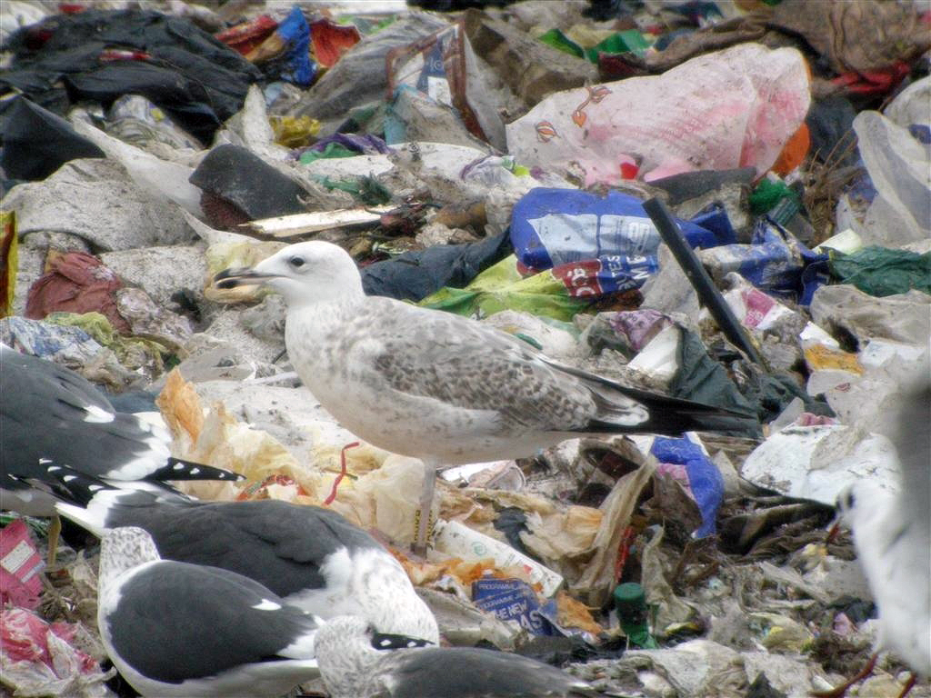 In this area are mixed breeding colonies (near Katowice), with far most birds breeding here are cachinnans, but in this area also records of very few michahellis from the south (e.g. ringed female from Italy) and argentatus from eastern Germany are possible (see PDF). PHKB is classic cachinnans. below: cachinnans 2CY PHKB October 04 2012, Deponie Pohlsche Heide - Minden, Germany (52°23'05N, 08°46'45E). Picture: Armin Deutsch. End of complete moult, P10 fully grown, with a small but obvious mirror. Many 2CY cachinanns have a subsequent partial autumn moult in September-October; this bird is no exception. The partial moult included again (for the 2nd time this year) GC1-2, MC1-2, few outermost LLC, TT1-2.